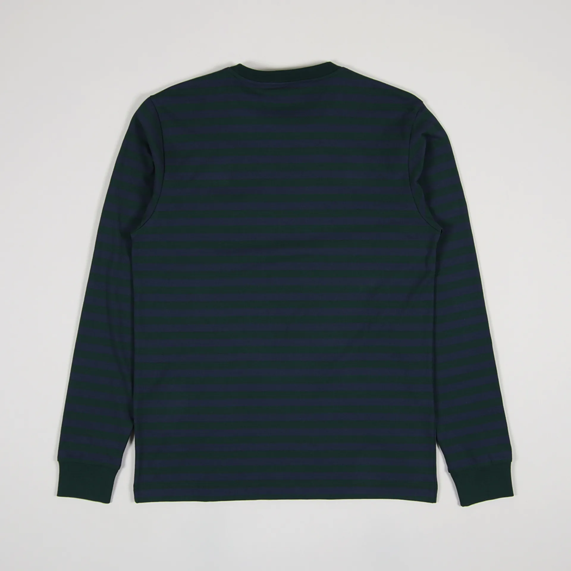 A long sleeve tee from Carhartt WIP made from a comfortable jersey of 100% cotton with a ribbed crew neck and cuffs, chest pocket, woven logo patch and Parker stripe pattern.