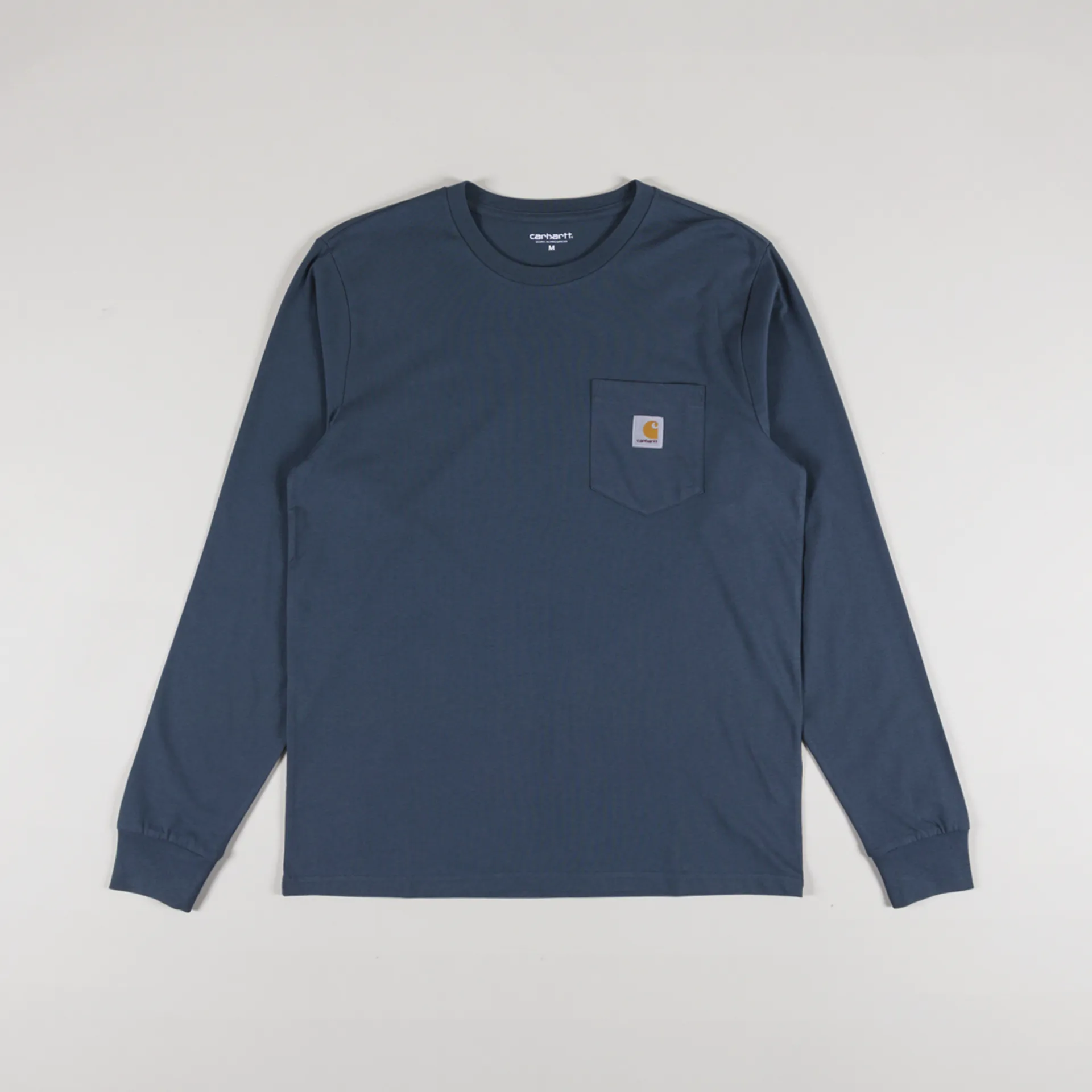 A staple of Carhartt's Work In Progress collection, the pocket tee features a woven logo patch to the chest of a single jersey made from 100% cotton which is super soft, and this long sleeve version has a ribbed crew neck and cuffs.