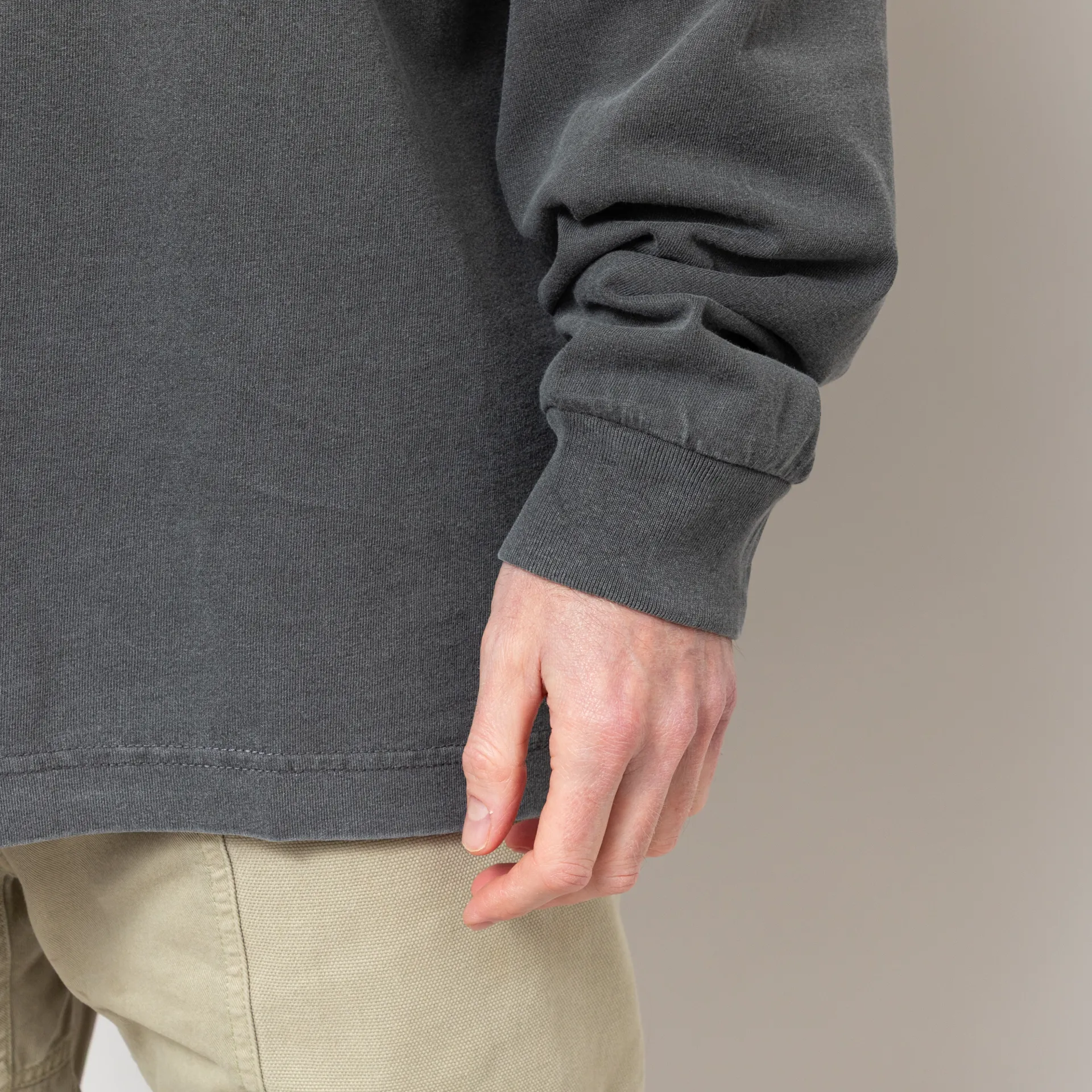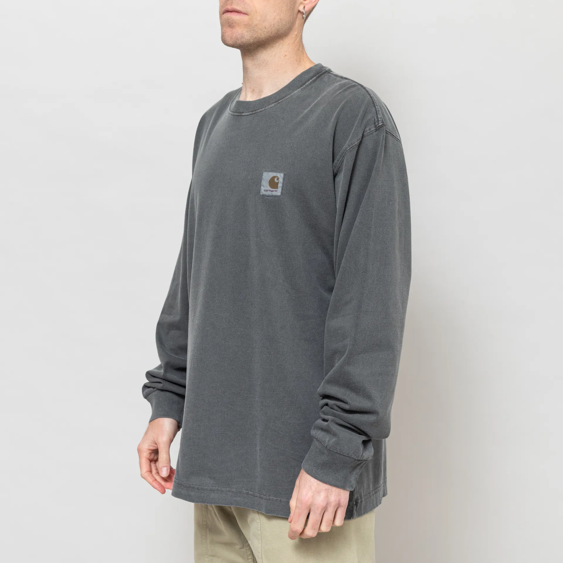 A long sleeve tee from Carhartt WIP made from a comfortable single jersey of 100% organic cotton with a ribbed crew neck and cuffs, and a pigment dyed logo patch to the chest.