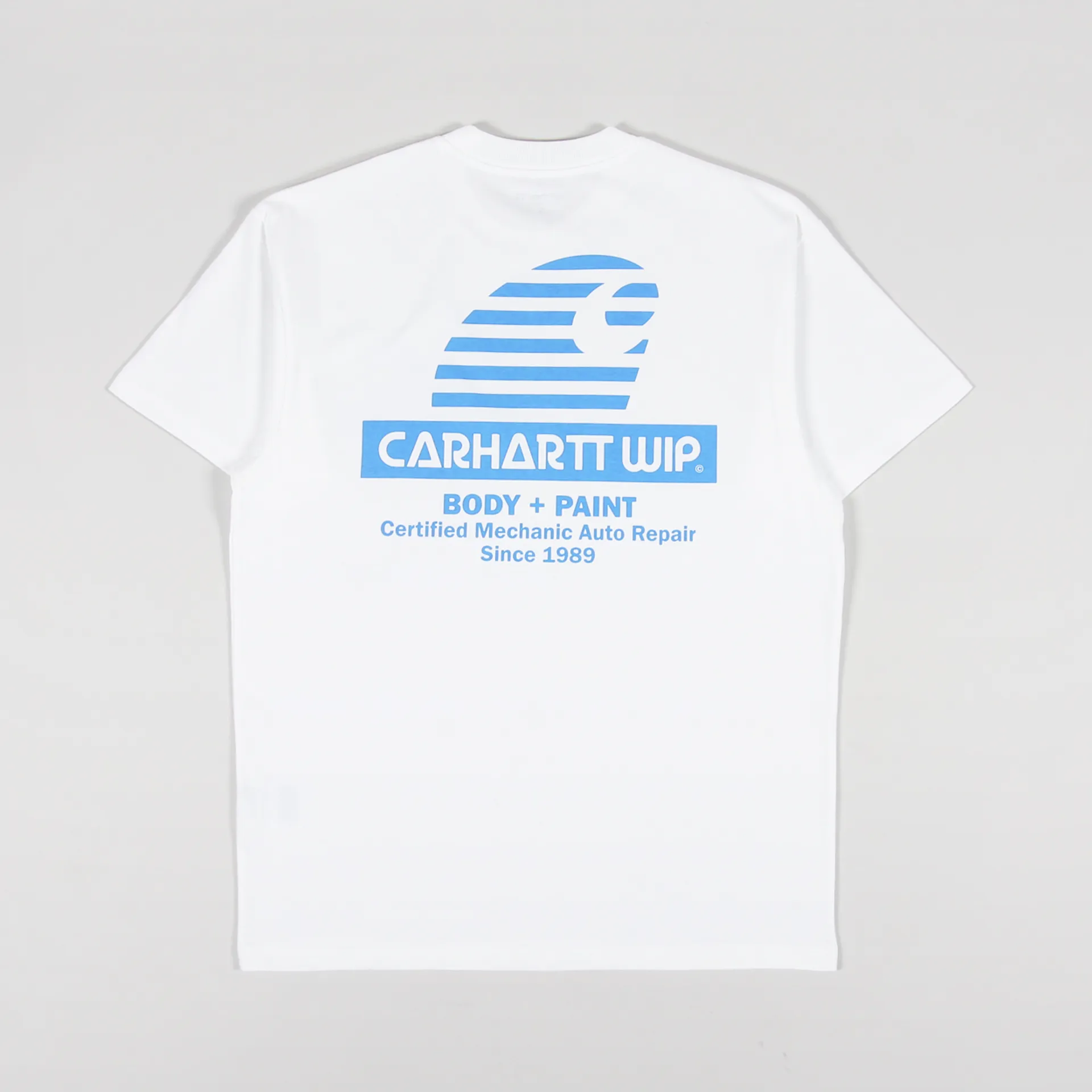 A short sleeve tee from Carhartt WIP made from a comfortable jersey of 100% organic cotton with a ribbed crew neck and graphic logo prints to the chest and back.