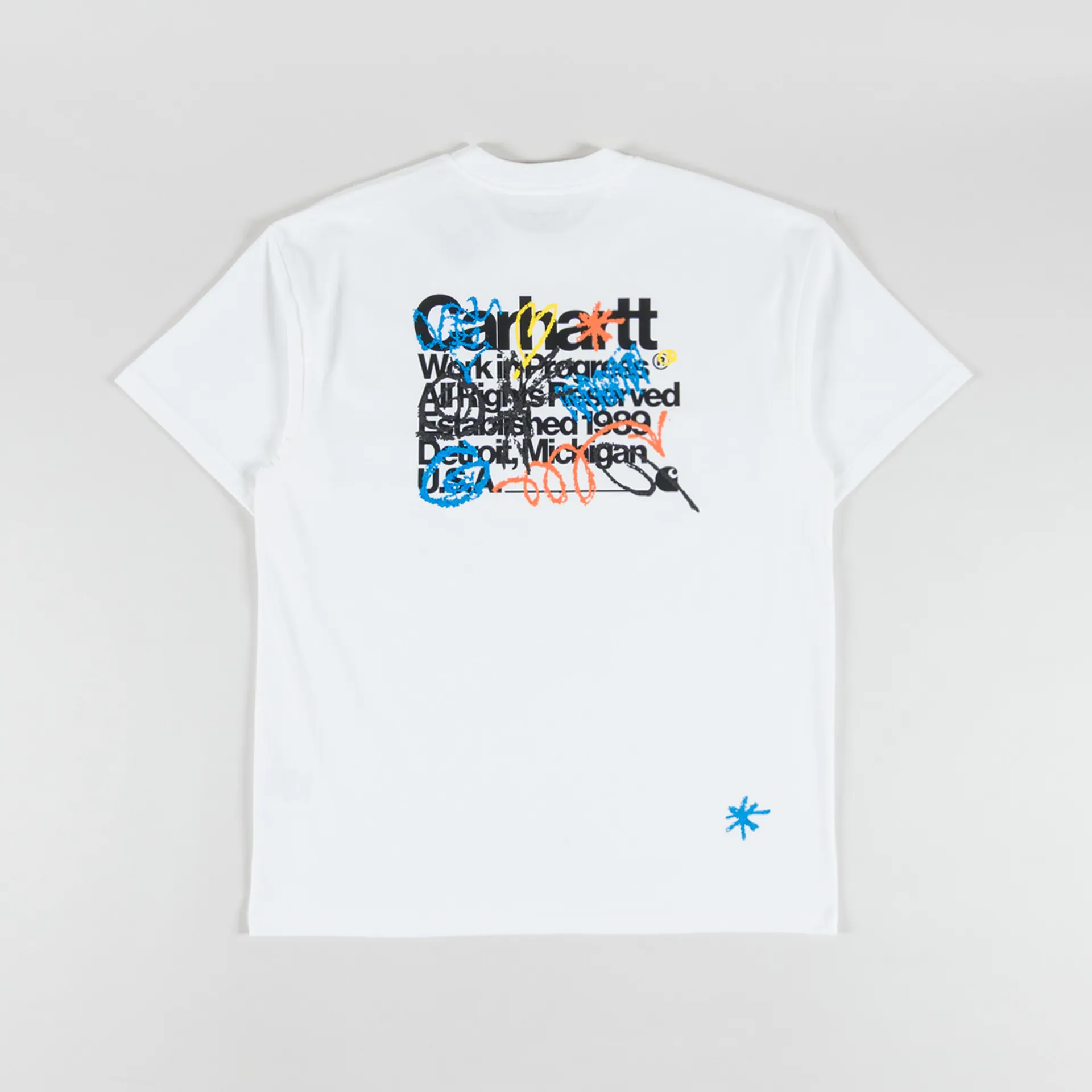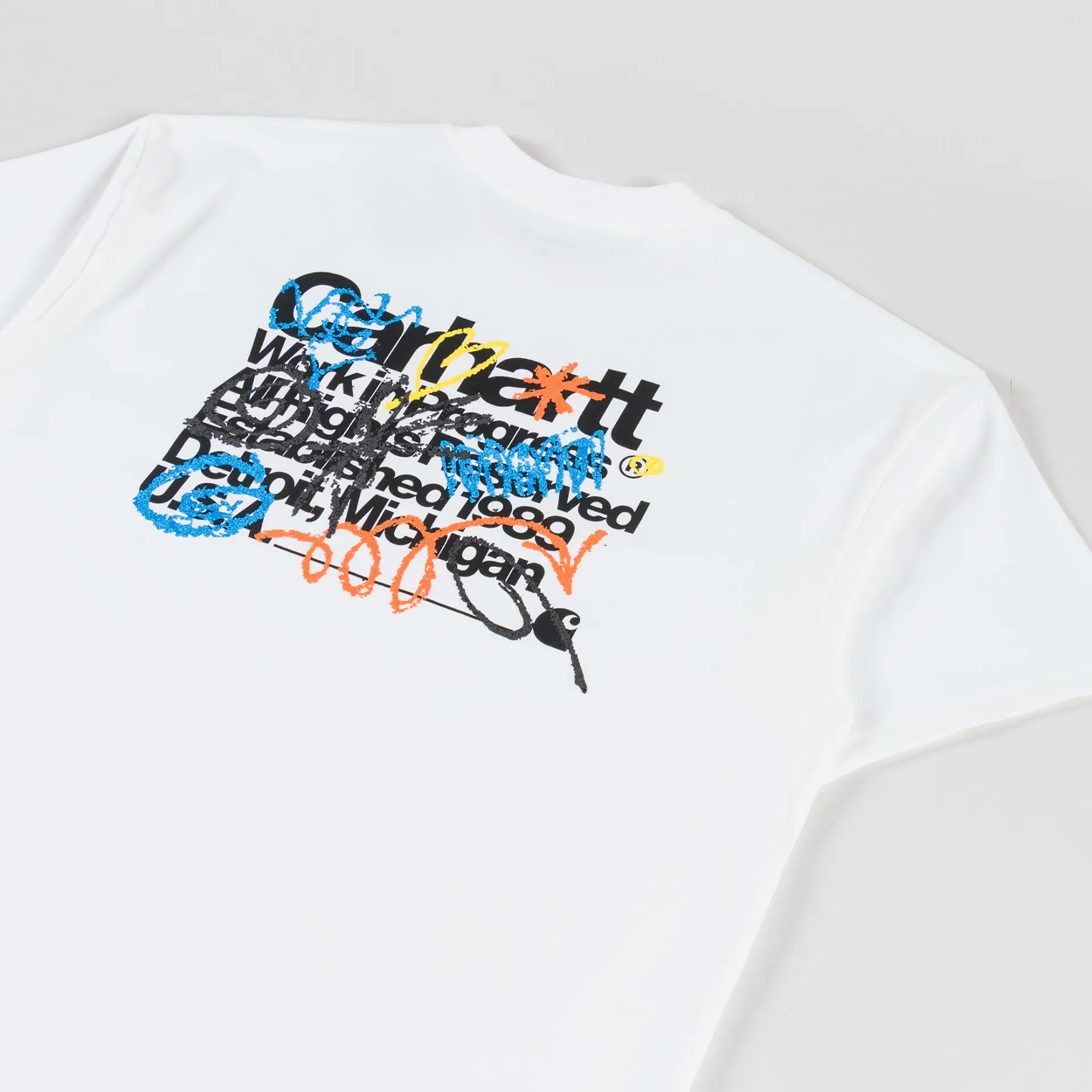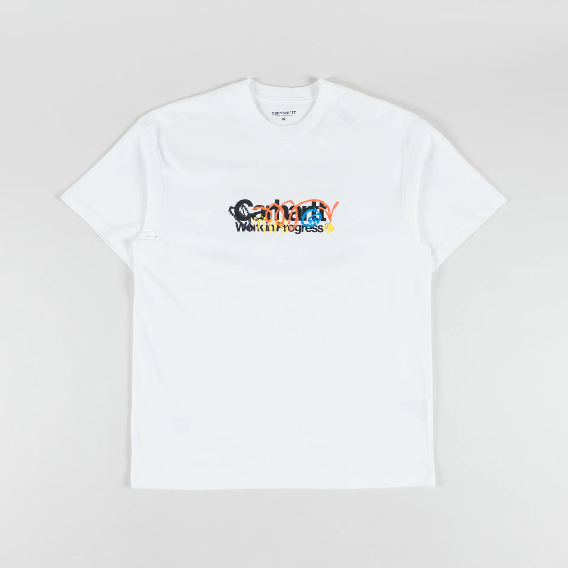 A graphic tee from Carhartt WIP, constructed from midweight organic cotton jersey in a loose fit. It features a ribbed crewneck, a straight hem, with bold, colourful graphics across the chest and back.
