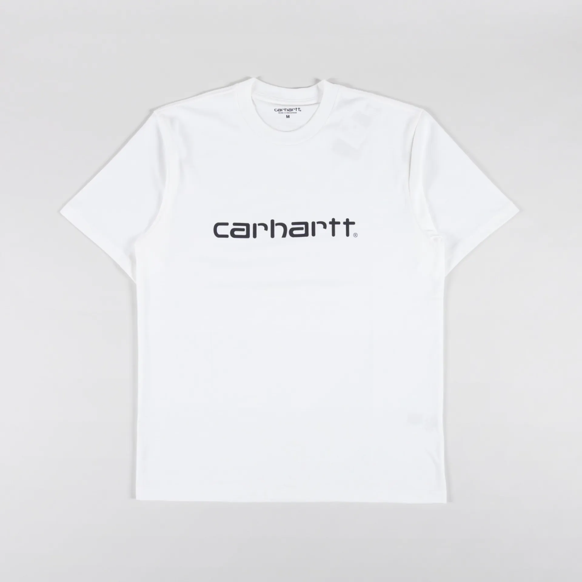 A short-sleeved tee from Carhartt WIP, constructed from soft cotton jersey and cut in a regular fit for everyday comfort. Featuring a ribbed crewneck, a straight hem and finished with a large contrasting script print across the chest.