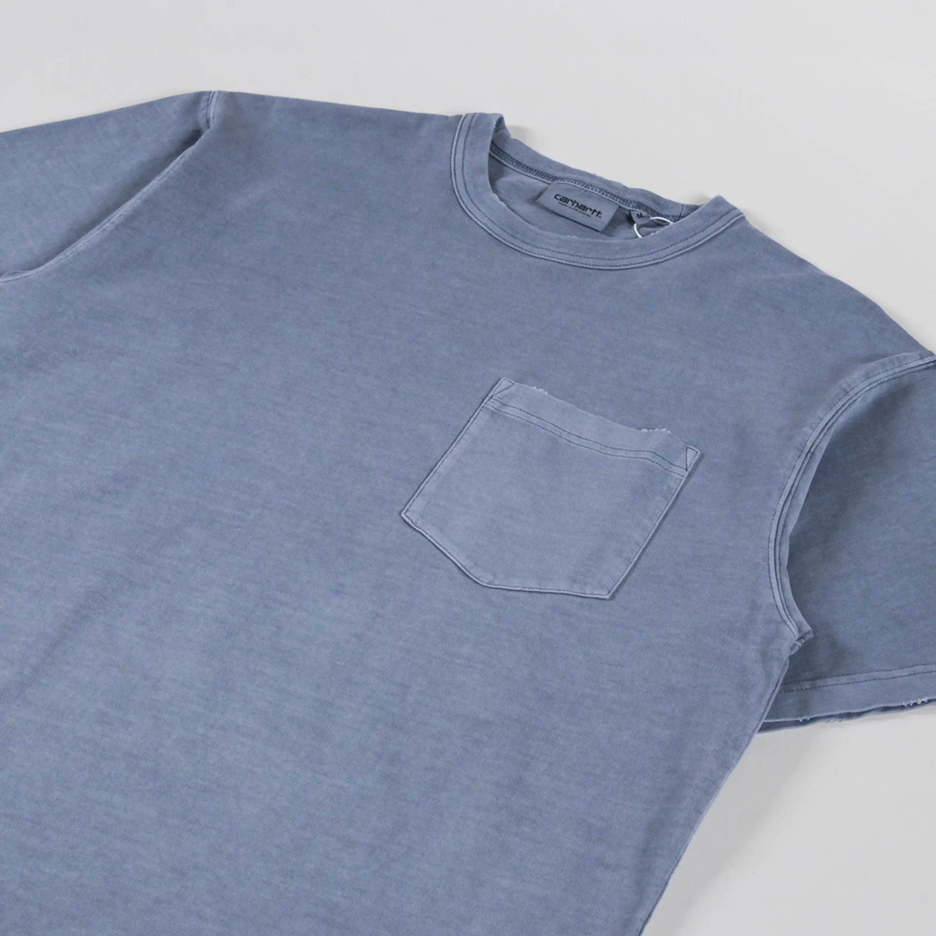 The Torion Pocket Tee from Carhartt WIP is cut in a loose fit with dropped shoulders for that laidback look we all dig. Constructed from midweight organic cotton jersey that has undergone a grind wash, a process which results in a slightly distressed, worn-in finish. Featuring a ribbed crewneck, a straight hem and a single pocket to the chest. Finished off with the signature Square label at the hem, rendered murky by the overdying process.