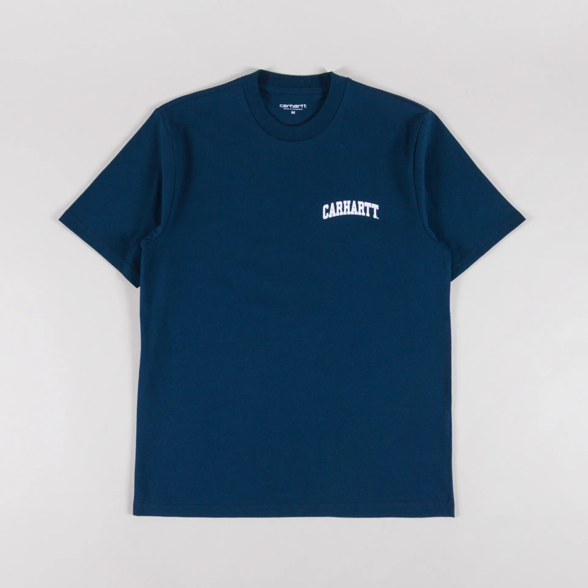 A simple tee from Carhartt WIP, constructed from midweight cotton jersey and cut in a regular fit for everyday comfort. Featuring a ribbed crewneck, a straight hem and finished with a University-style Carhartt logo sitting nicely at the chest.