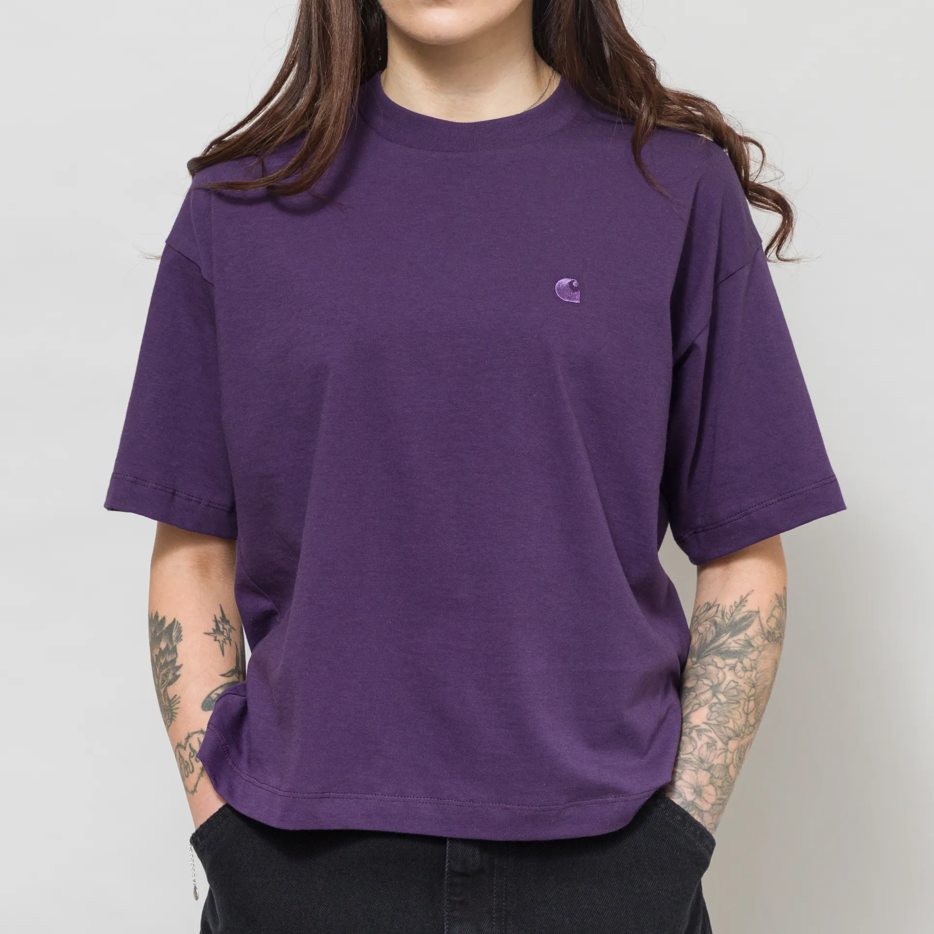 A short sleeve tee from Carhartt WIP's Womenswear collection, made from a comfortable jersey of 100% organic cotton with a ribbed crew neck and an embroidered logo to the chest.