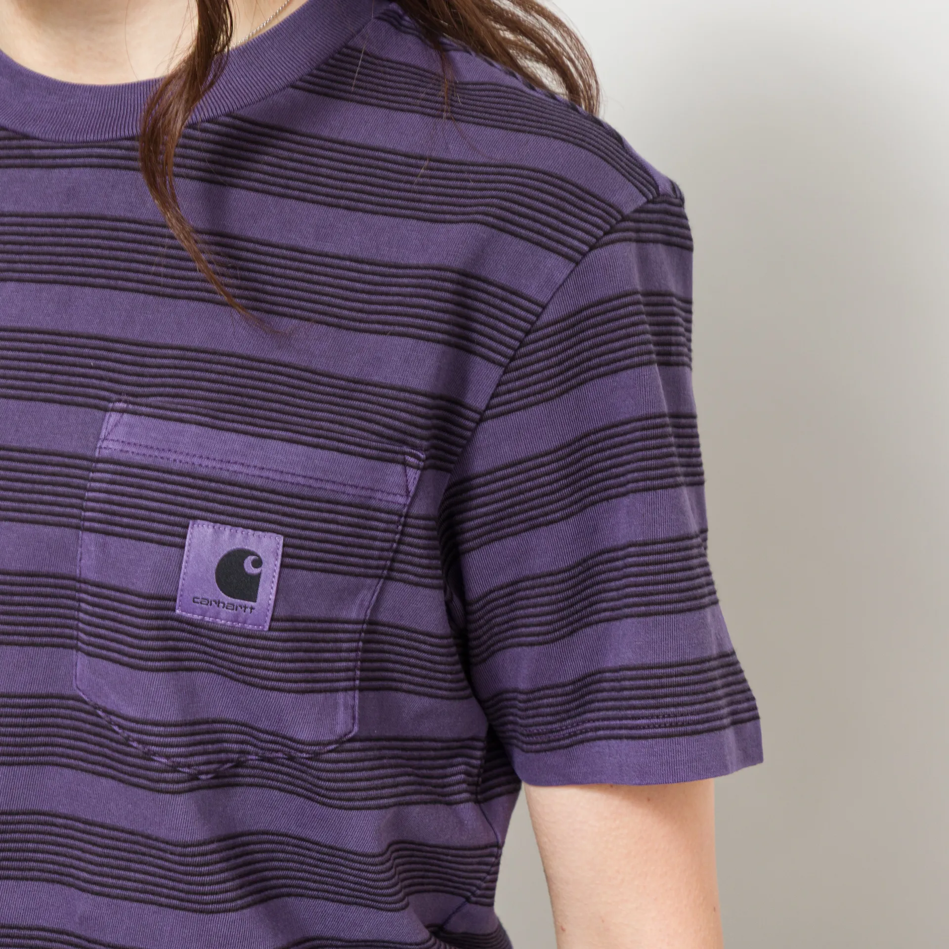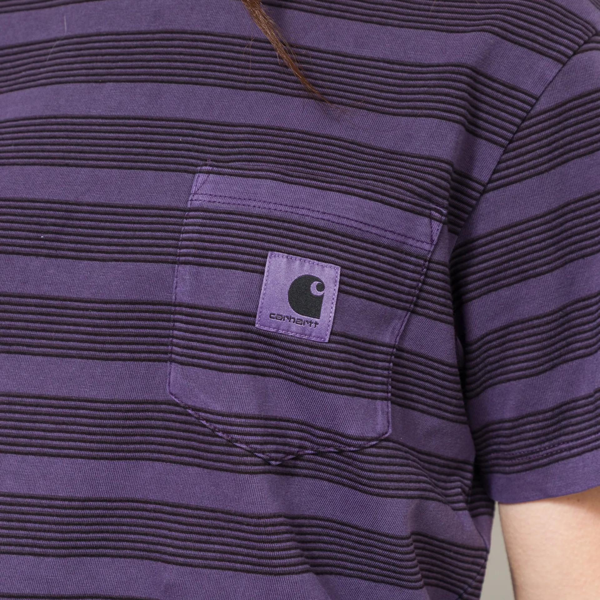 A striped tee from Carhartt WIP, cut in a regular fit for everyday comfort. It's constructed from midweight organic cotton jersey that has been garment-dyed for a softer feel. Featuring a ribbed crewneck, a straight hem and a single chest pocket with the signature Square Label.