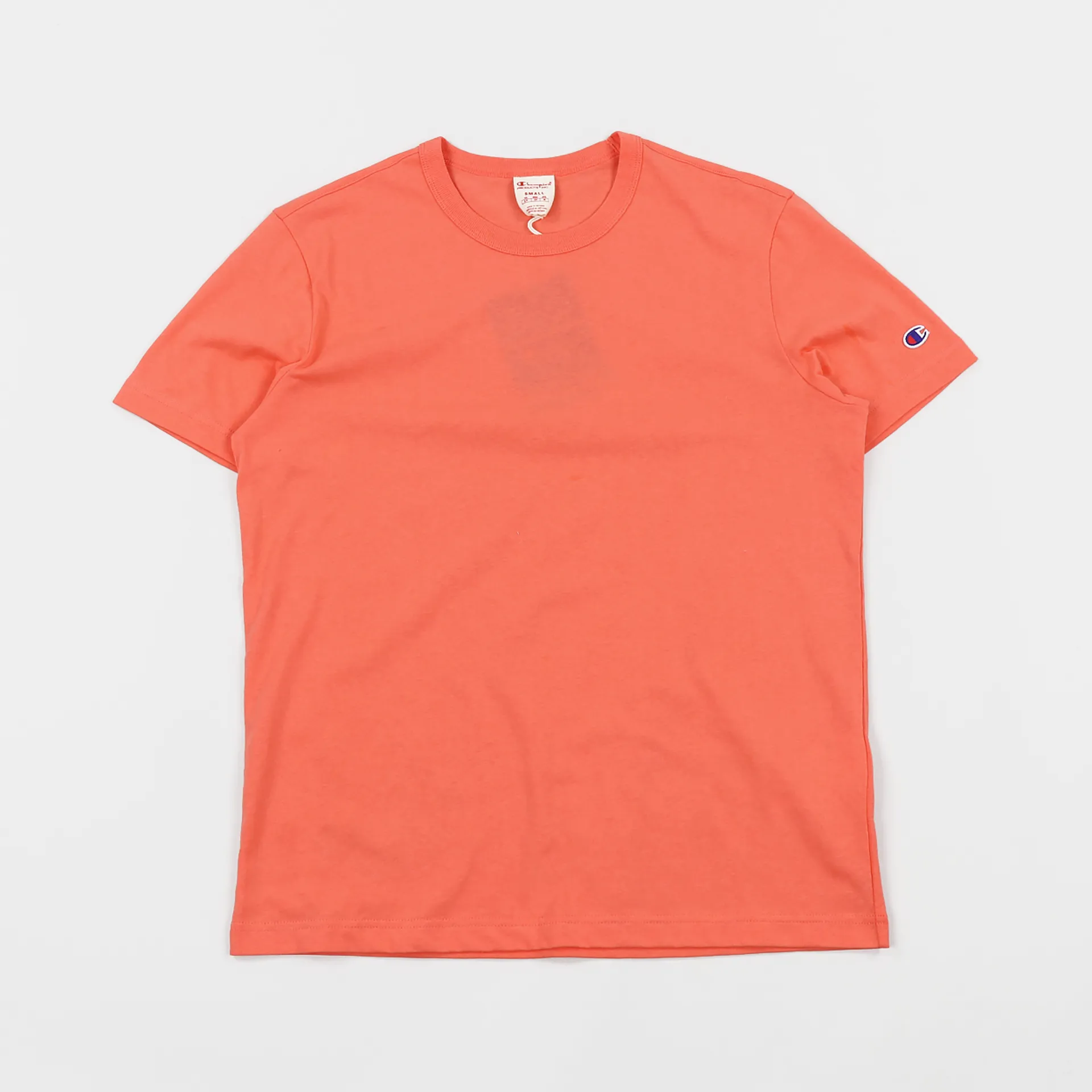 A simple 100% cotton tee from Champion, using their patented Reverse Weave. Features a finely ribbed crew neck and an embroidered C logo, stitched to the sleeve.