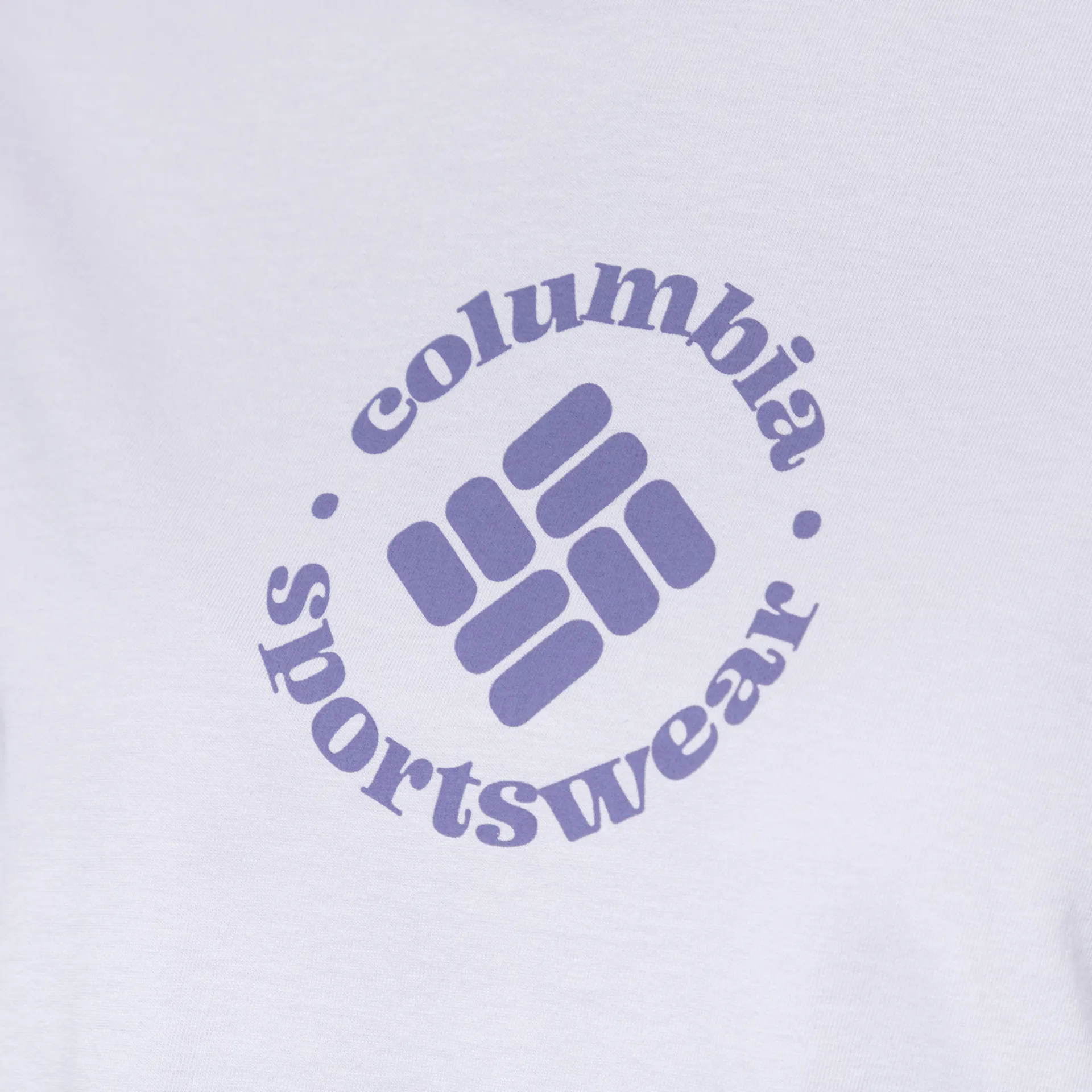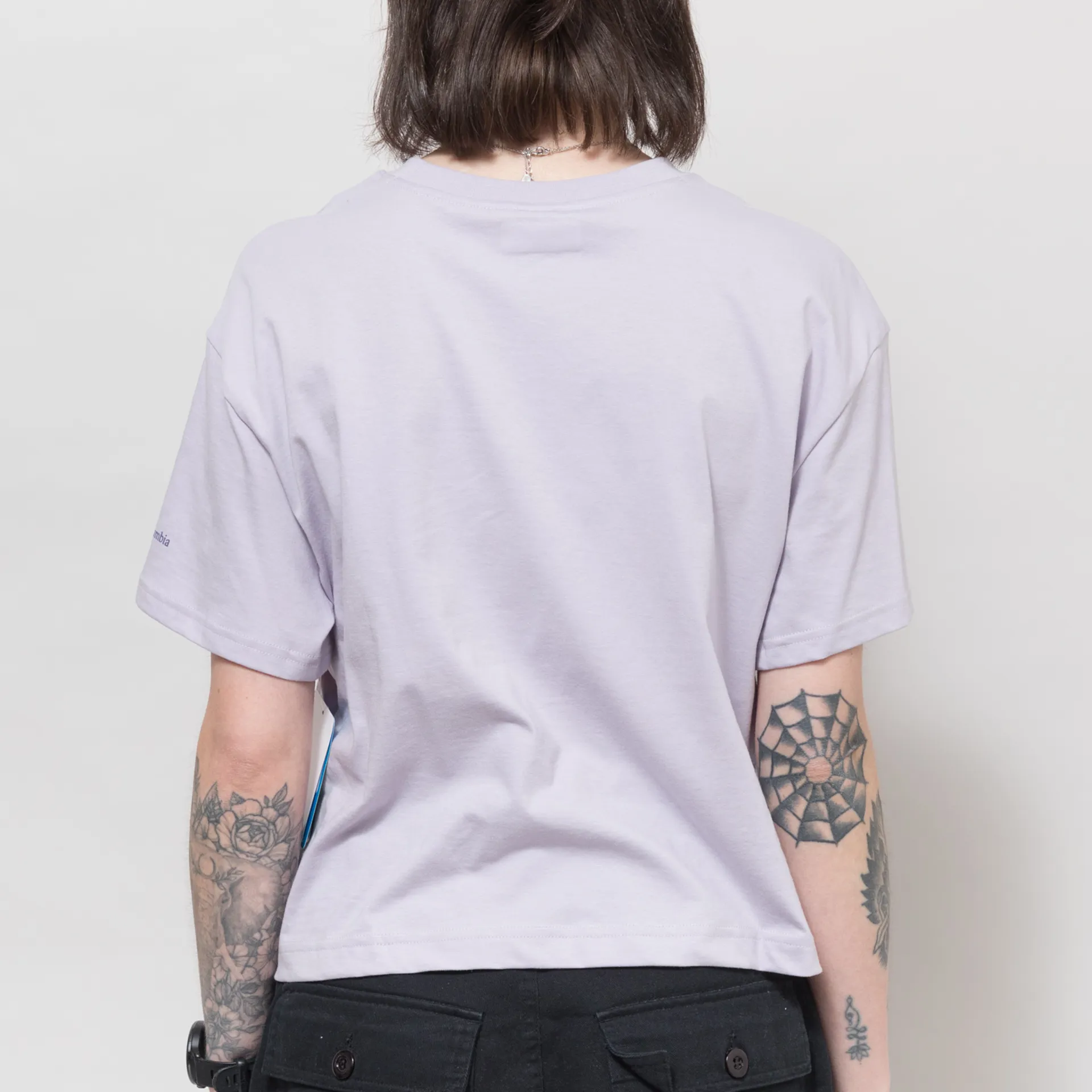 Columbia Womens Rolling Bend Graphic Cropped T Shirt Lavender Pearl Gem Focused