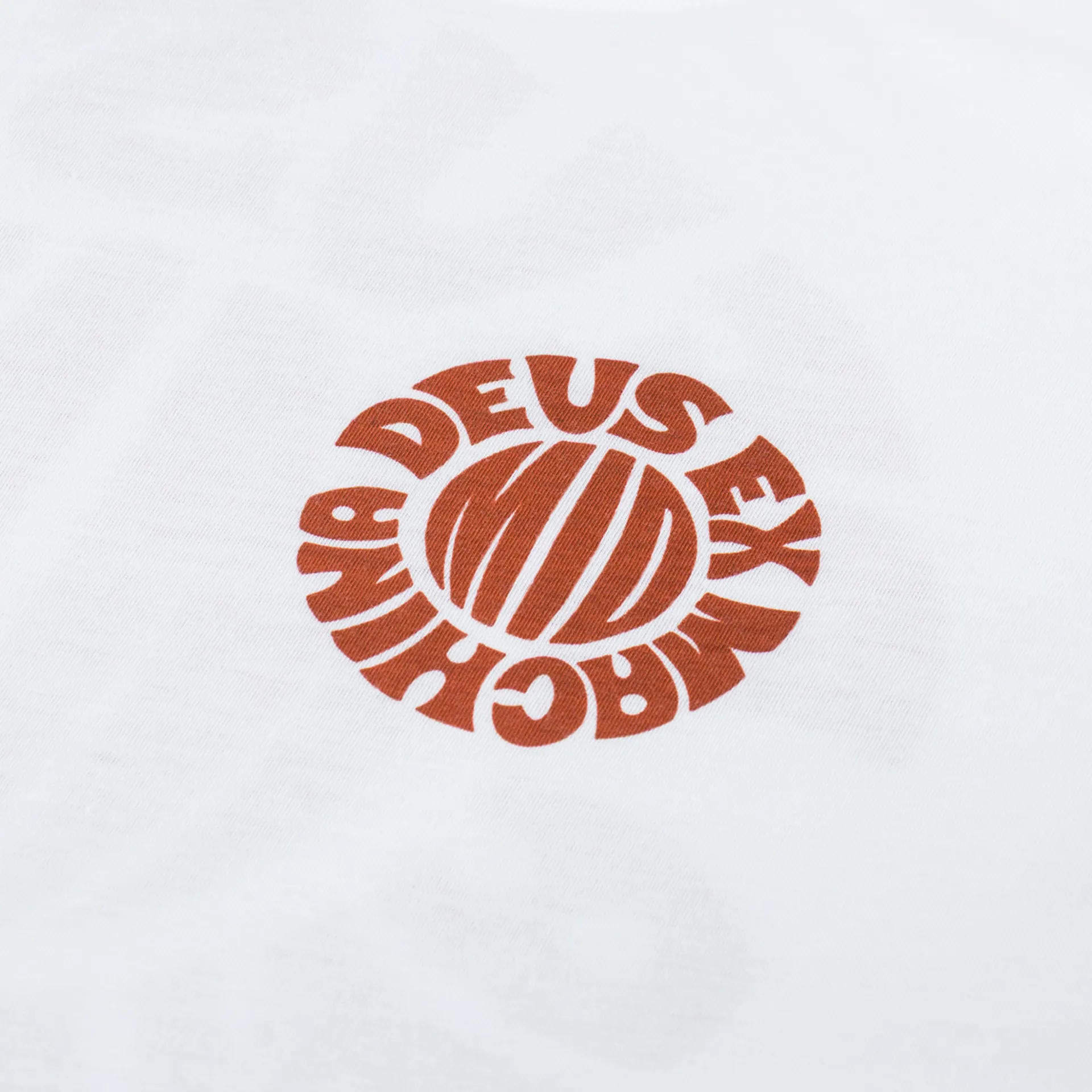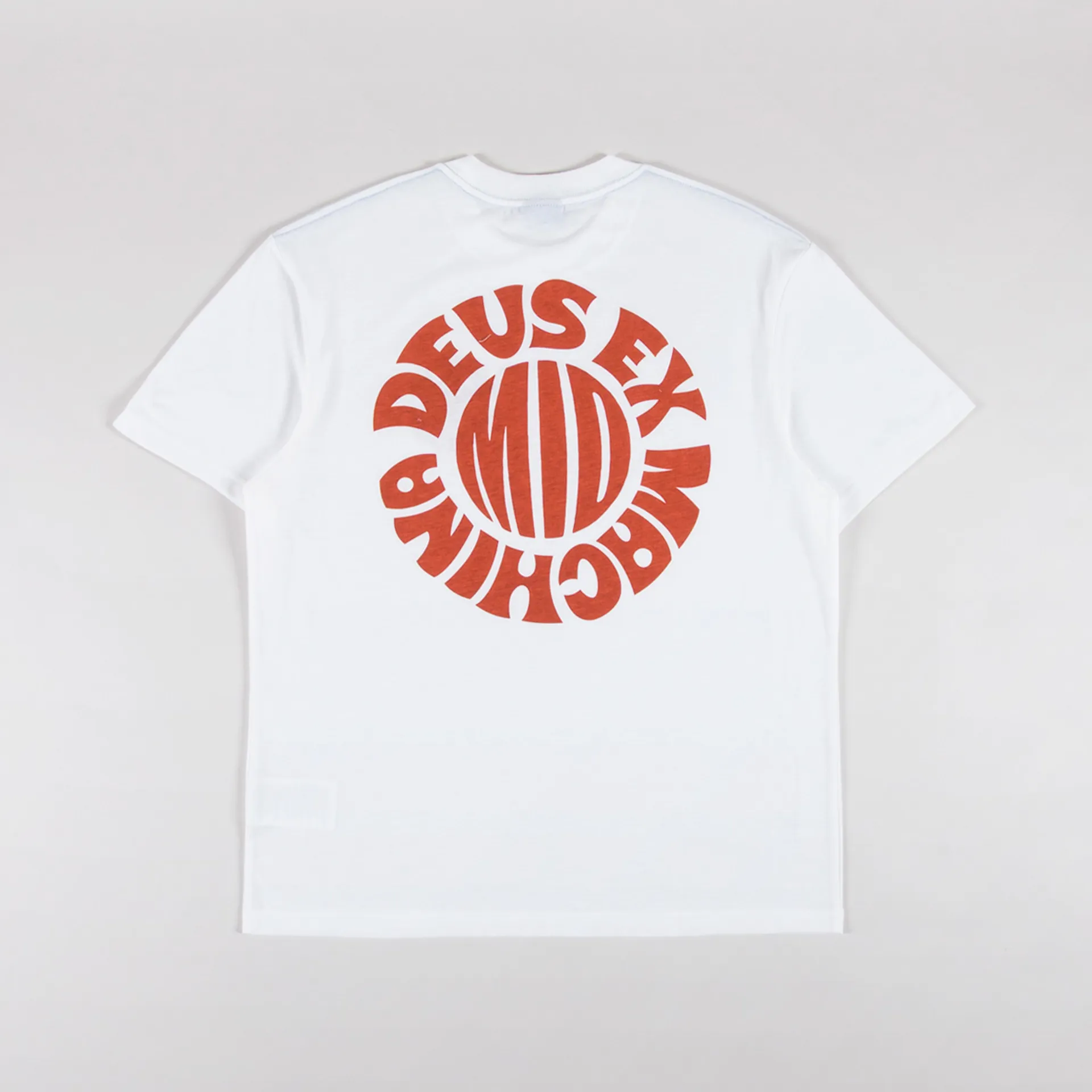A boxy tee from Deus, constructed from a durable poly-cotton blend and garment-washed for a softer hand feel. Featuring a ribbed crewneck, a straight hem and finished with a groovy graphic at the chest and back.