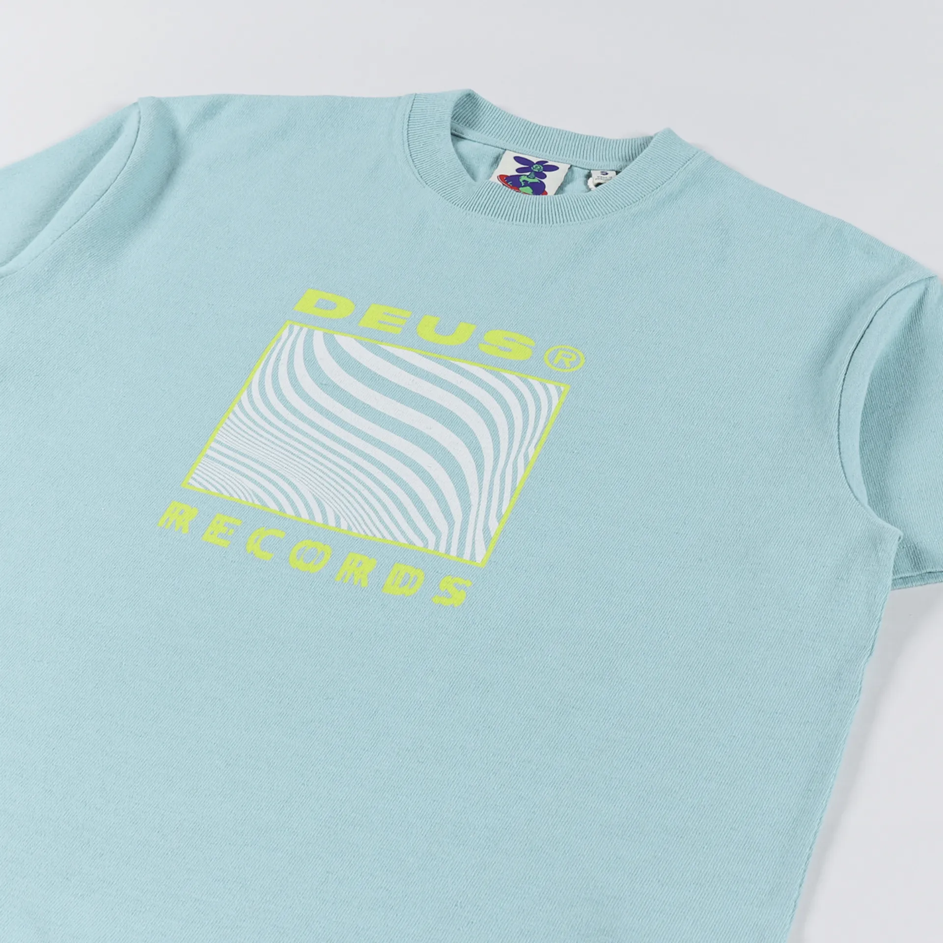 A women's short sleeve tee from Deus Ex Machina, made from a comfortable blend of 50% cotton and 50% recycled cotton, with a ribbed crew neck and graphic artwork to the front and back.