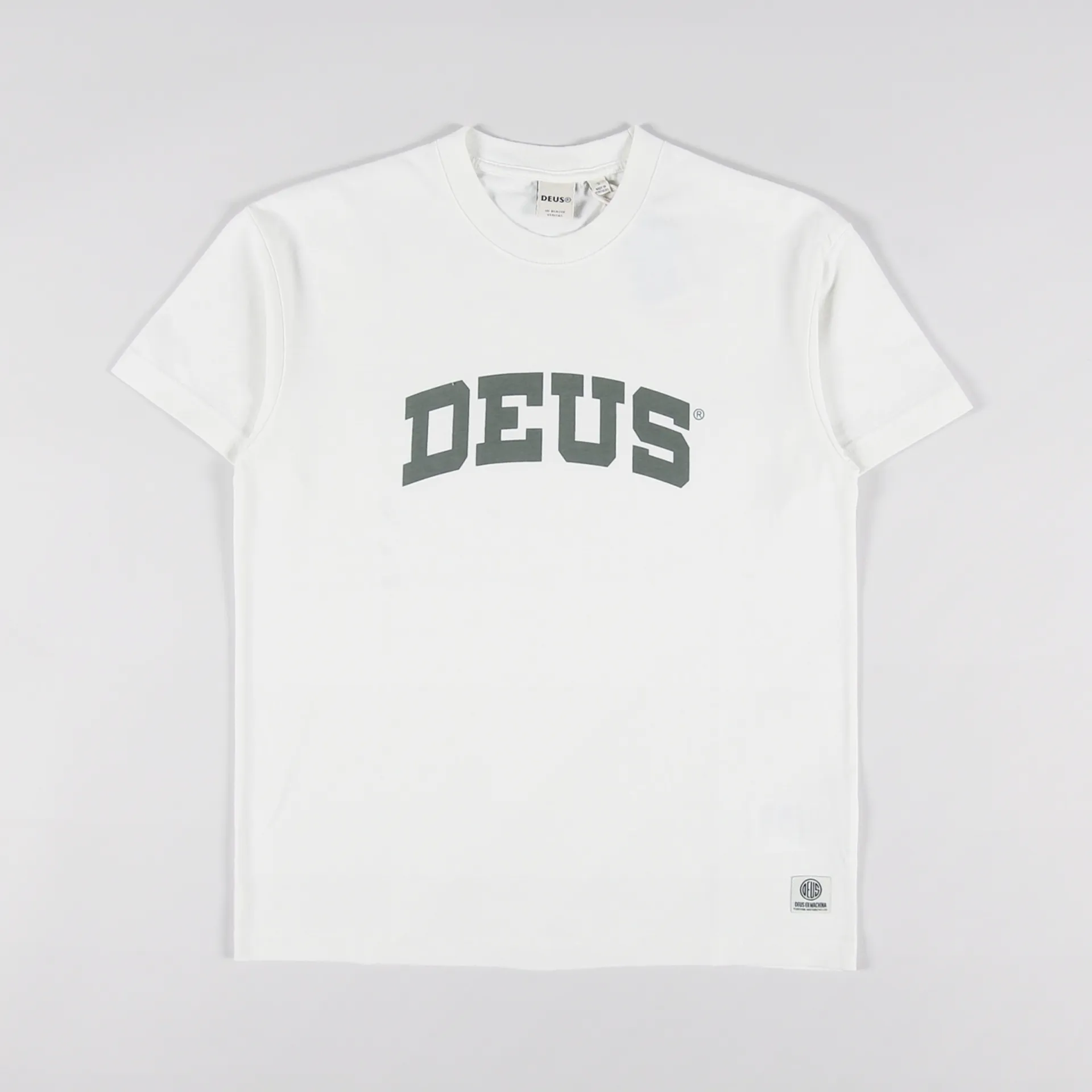 A short sleeve tee from Deus Ex Machina made from a comfortable jersey of 50% cotton and 50% recycled cotton, with a ribbed crew neck and a logo print across the front.