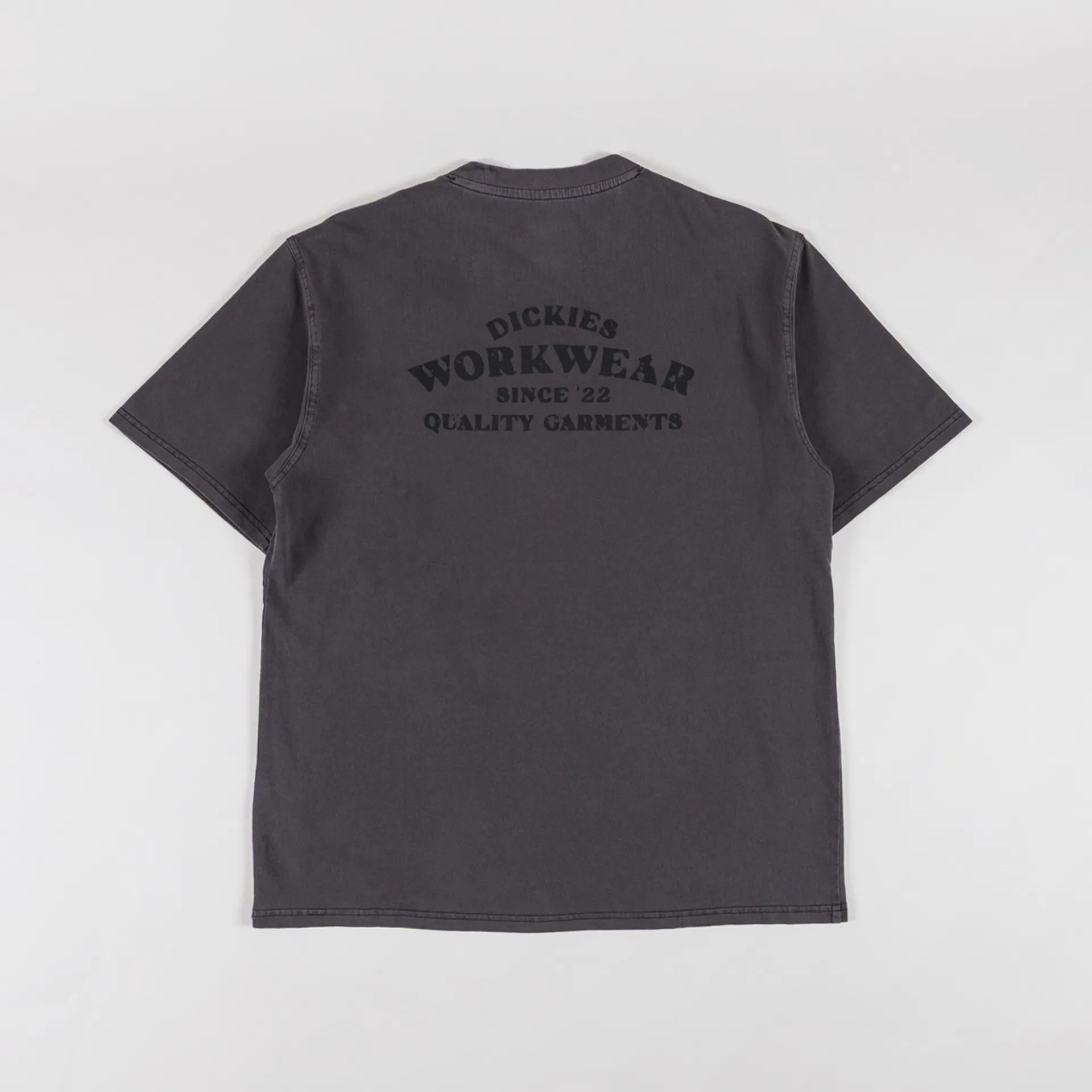A short-sleeve tee from Dickies, cut in a relaxed fit for a casual silhouette and crafted from 100% cotton, garment-dyed for a softer feel and worn-in look. It has a ribbed crewneck, a straight hem with a flag label and is finished with printed text to the chest and back.