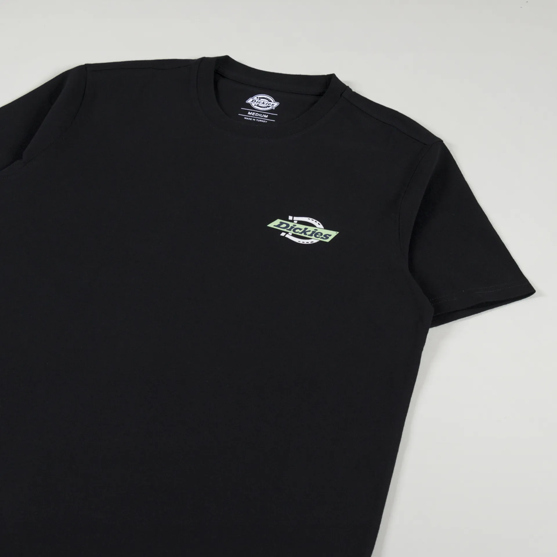 A short sleeve tee from Dickies made from a comfortable single jersey of 100% cotton with a ribbed crew neck, a woven logo tag to the side and graphic logo prints to the chest and back.