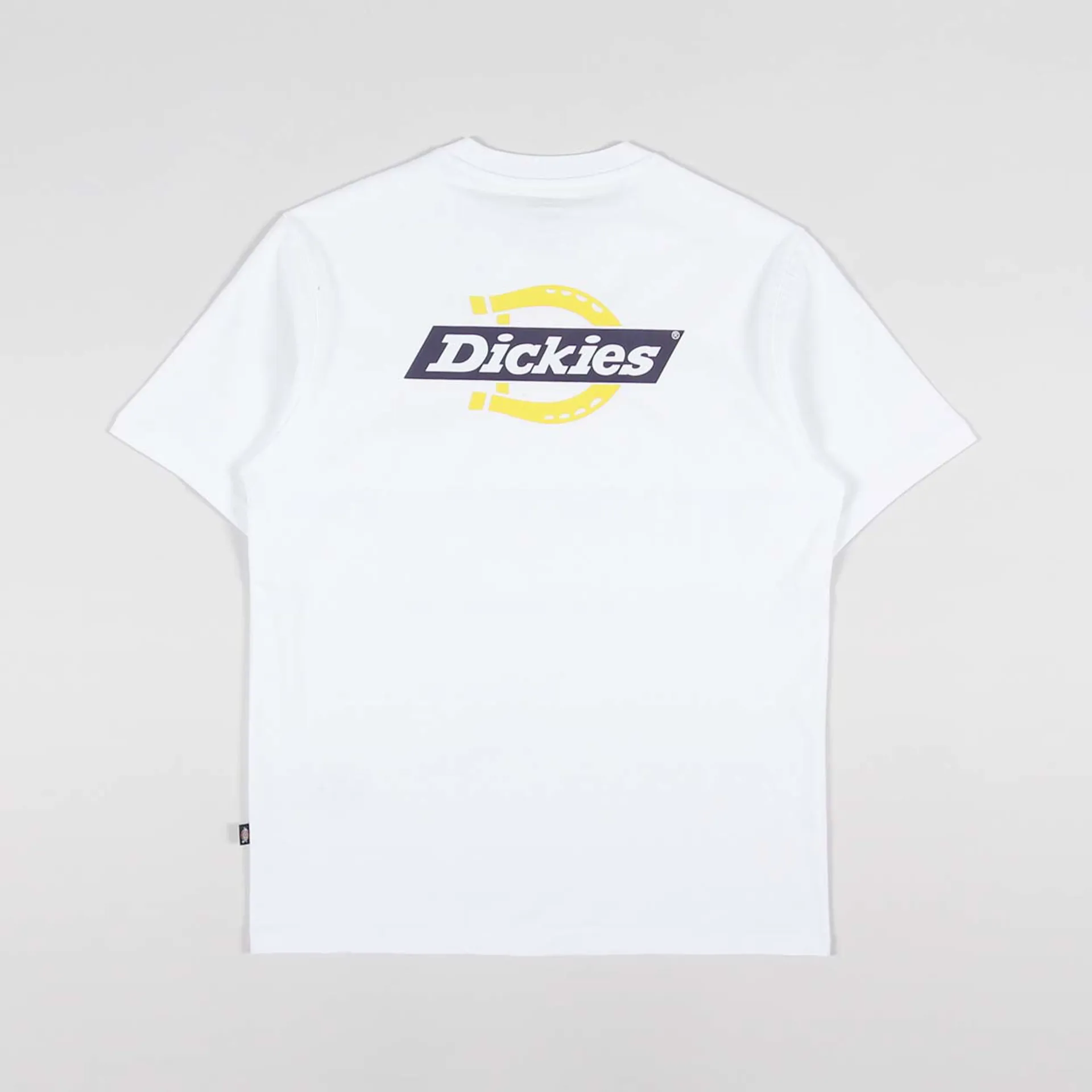 A short sleeve tee from Dickies made from a comfortable single jersey of 100% cotton with a ribbed crew neck, a woven logo tag to the side and graphic logo prints to the chest and back.
