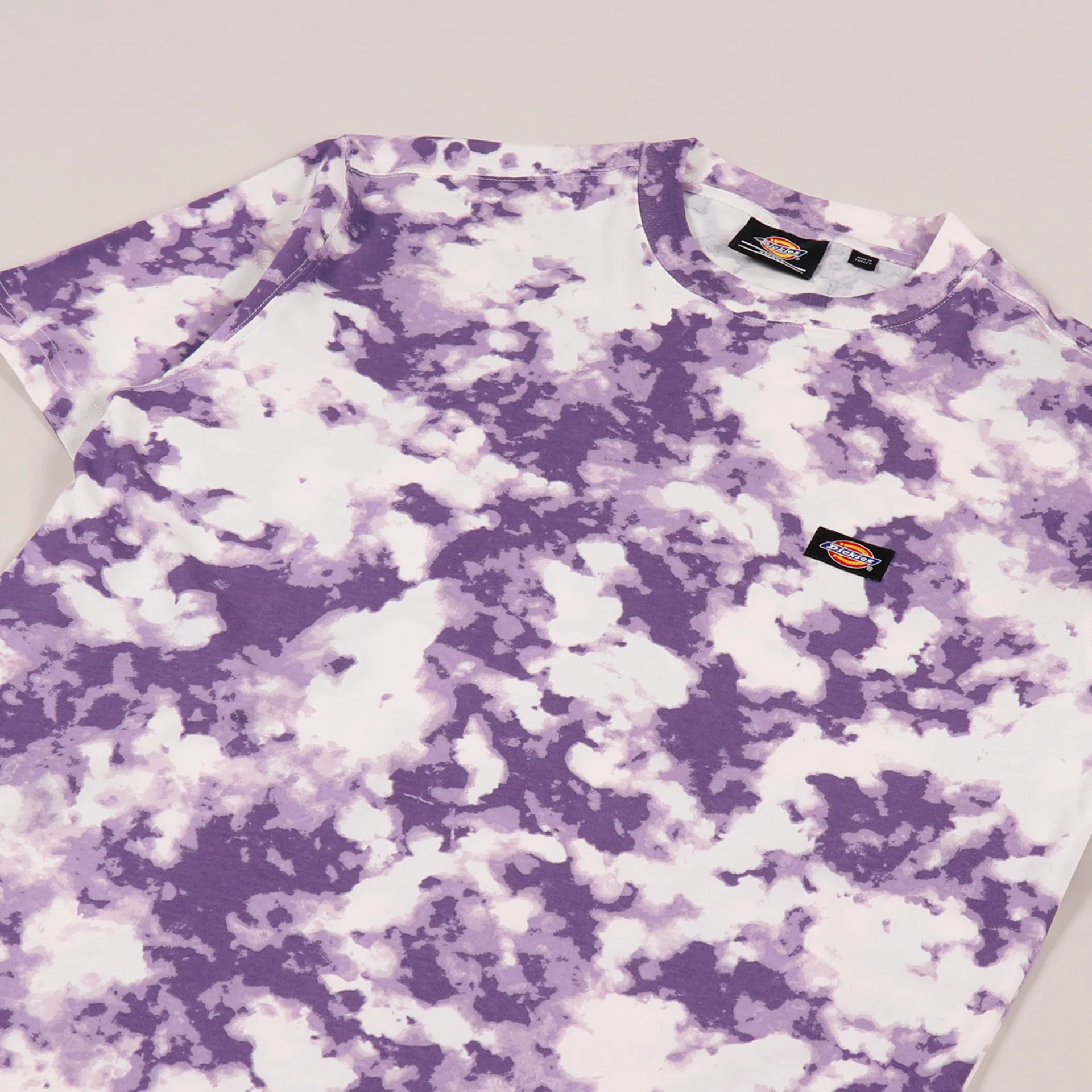 A short sleeve tee from Dickies Lifestyle made from a comfortable and lightweight single jersey of 100% cotton with a ribbed crew neck, a woven logo patch and a tie dye design.