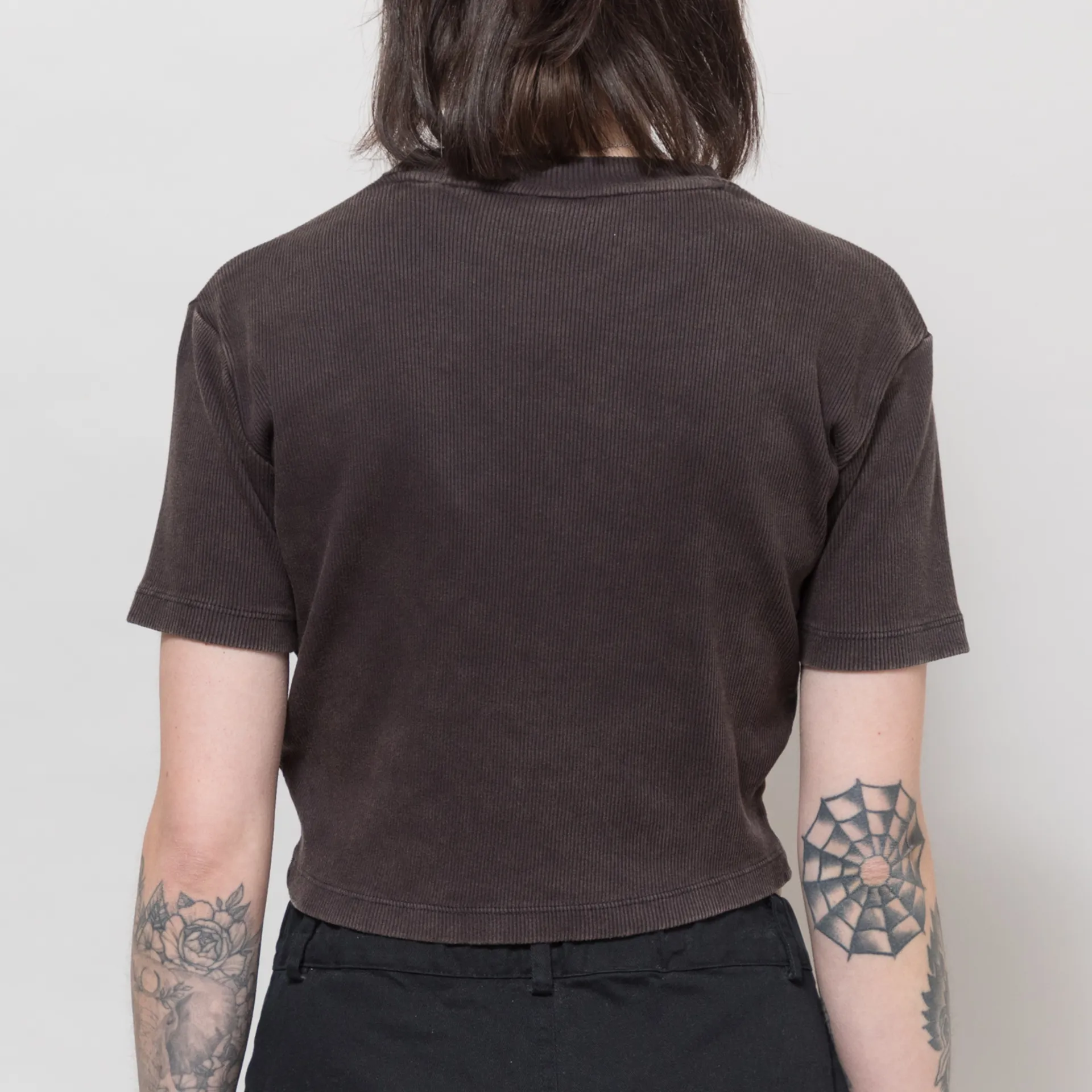 A baby tee from Dickies, cut in a slim, cropped fit for a casual silhouette and constructed from double-dye acid-washed cotton, with an all-over ribbed design and a tonal embroidered Dickies logo at the chest.