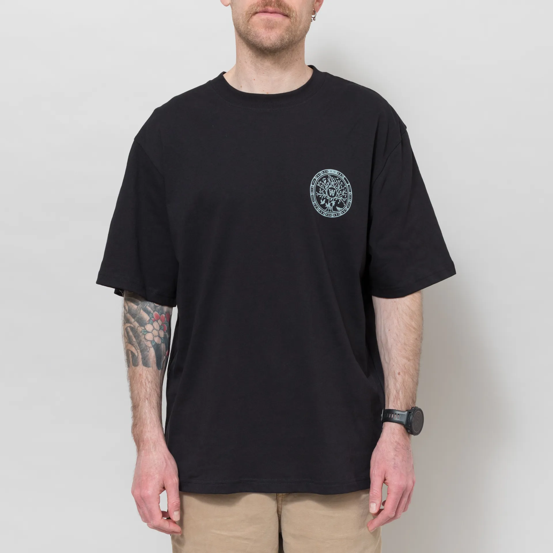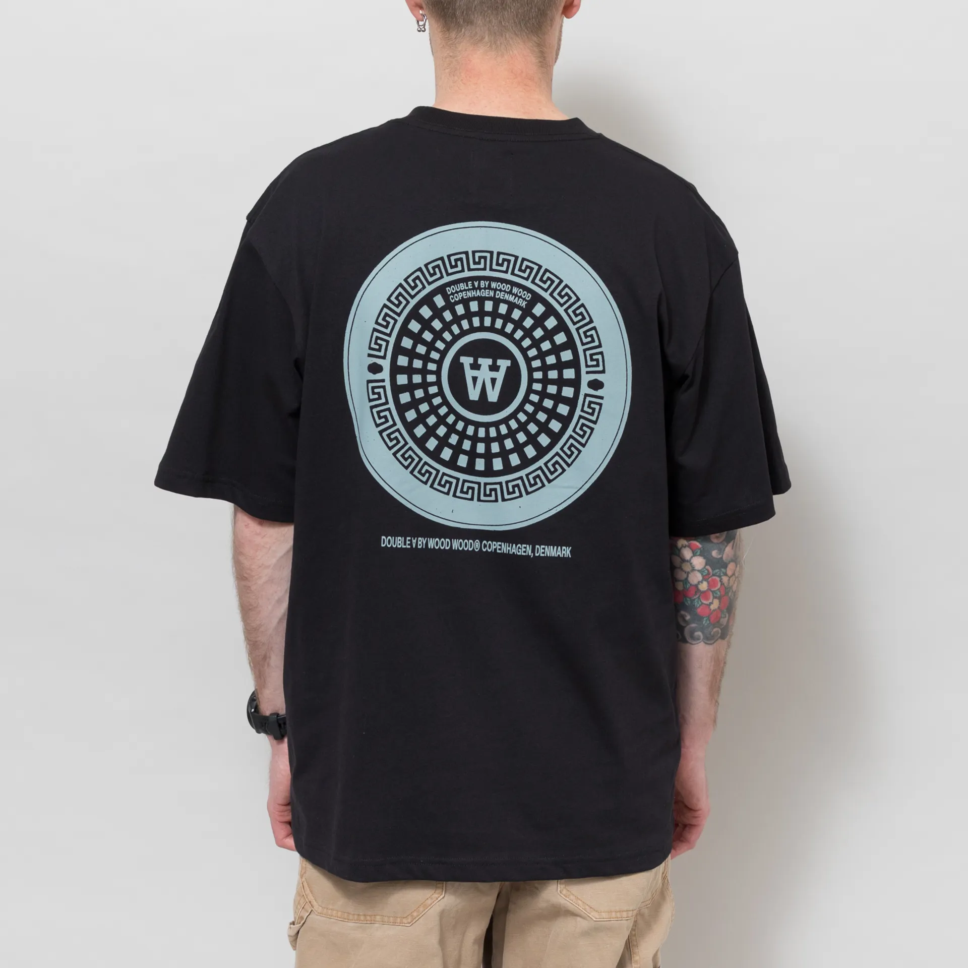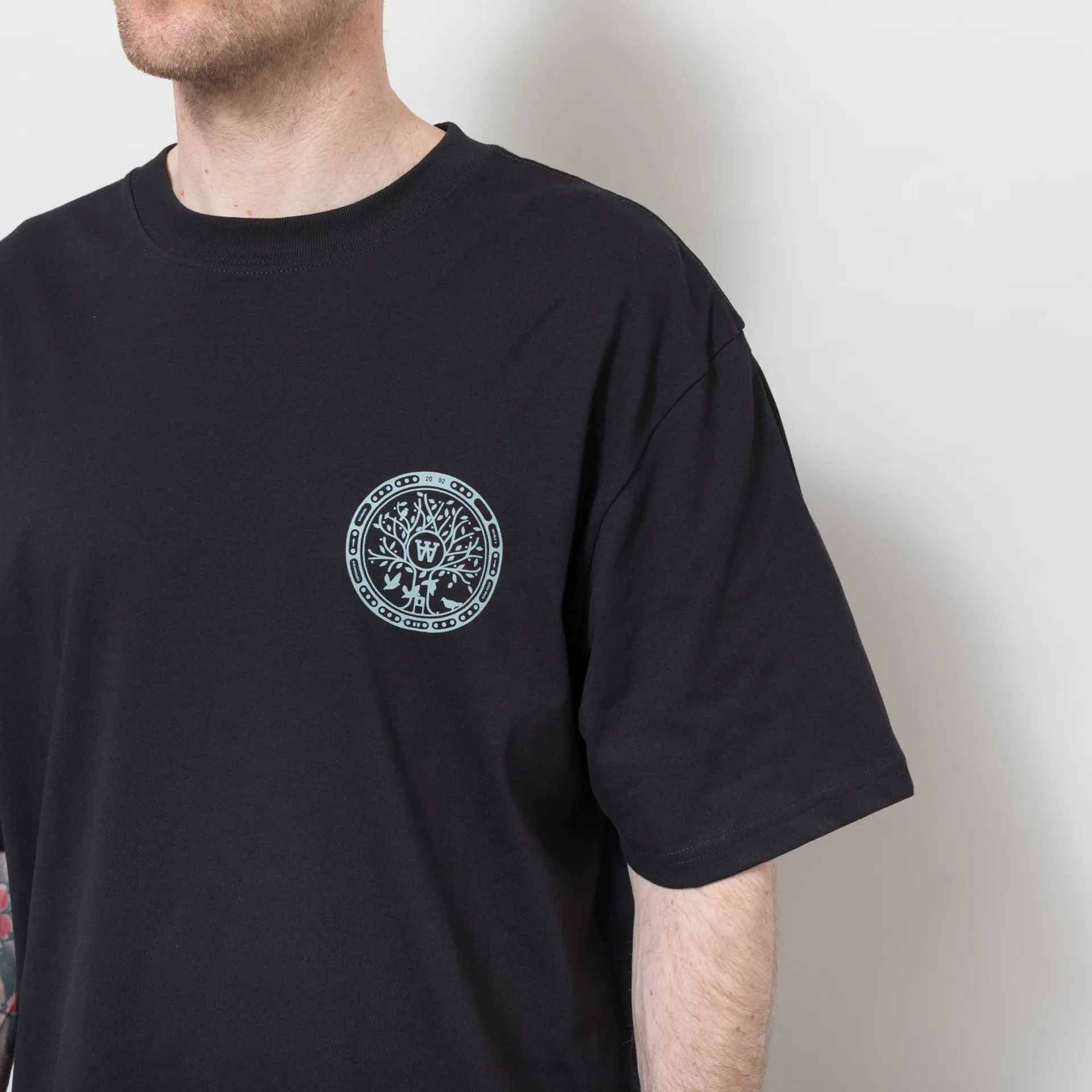 A graphic tee from Wood Wood, cut in a loose fit for a casual look and constructed from soft cotton. Featuring a ribbed crewneck, a straight hem and complete with some cool graphics to the chest and back.