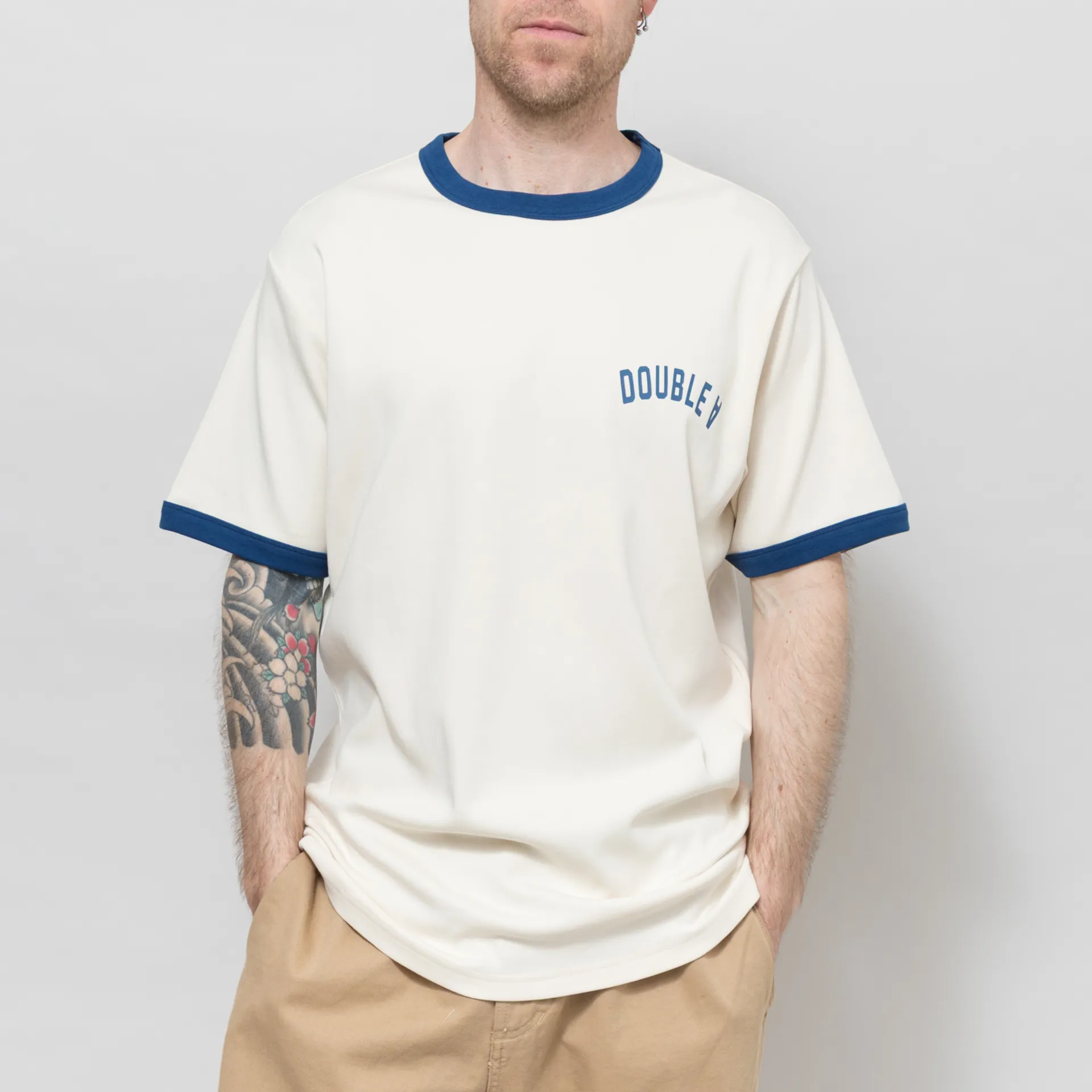 A classic ringer tee from Double A, cut in a relaxed fit for a casual silhouette and is constructed from super soft cotton.