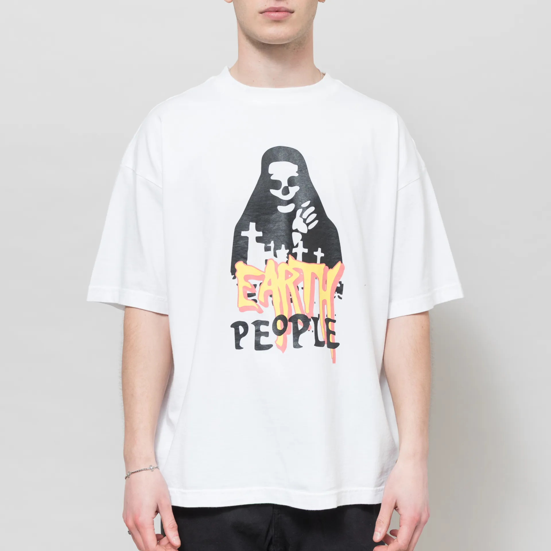 A graphic tee from Earth People, cut in a loose fit for a casual silhouette and constructed from heavyweight cotton jersey fabric. It has a ribbed crewneck, a straight hem with a woven logo patch and a cool graphic across the chest to finish.
