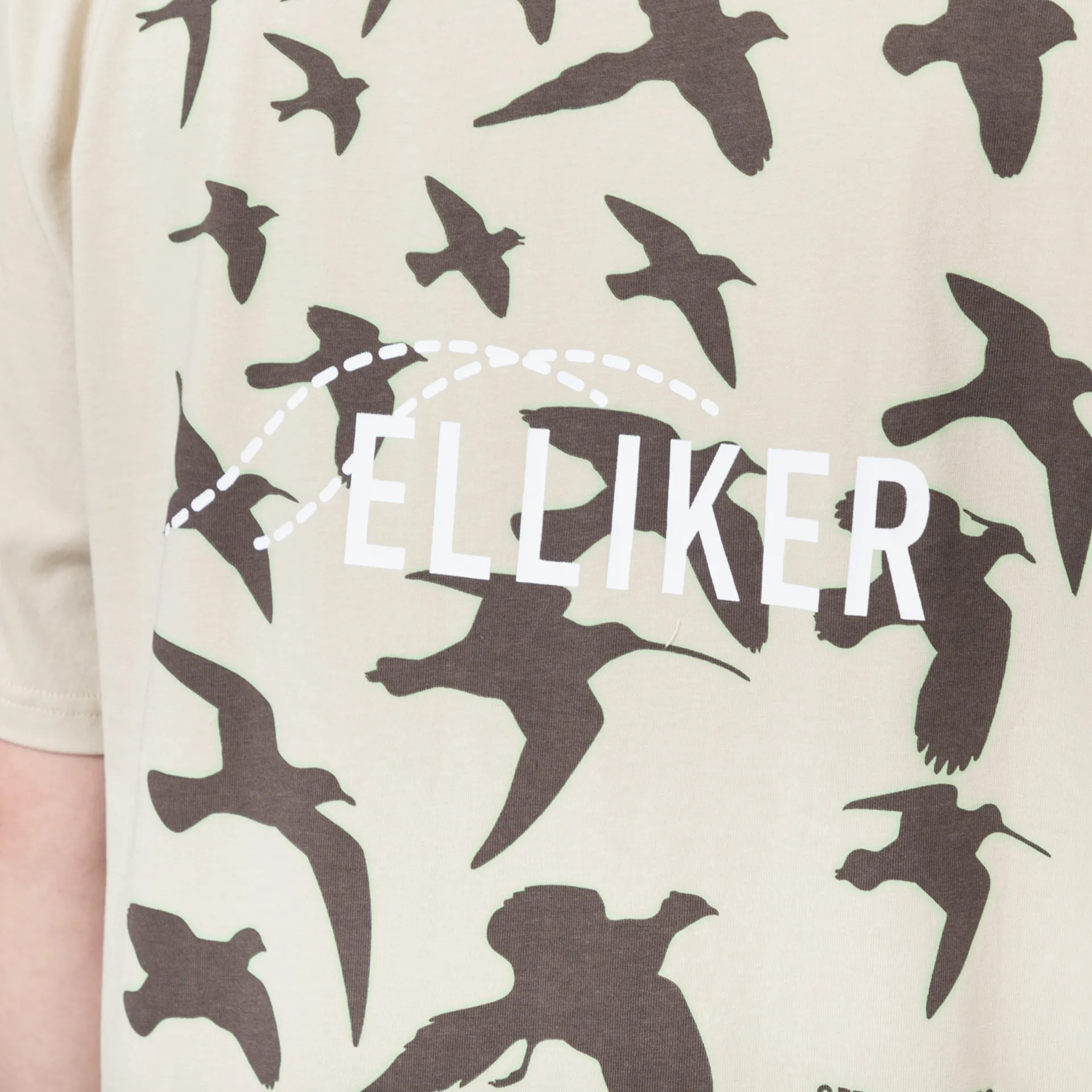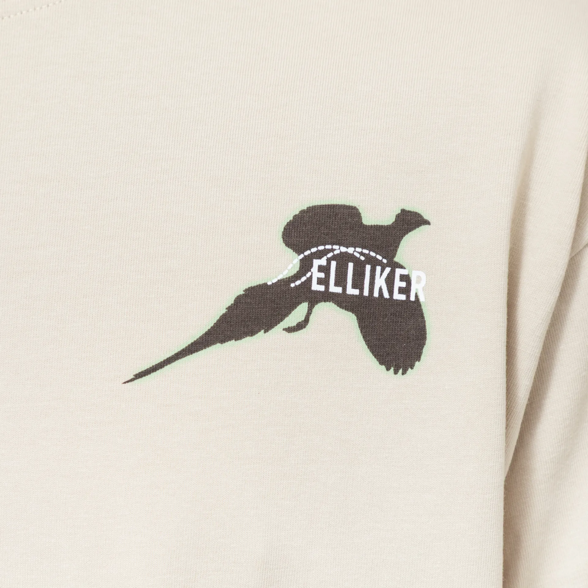 A relaxed fitting tee from Elliker, constructed from heavyweight, 100% organic combed cotton. It features a ribbed crewneck, a straight hem, flag label at the sleeve and is finished with some cool graphics to the chest and back.