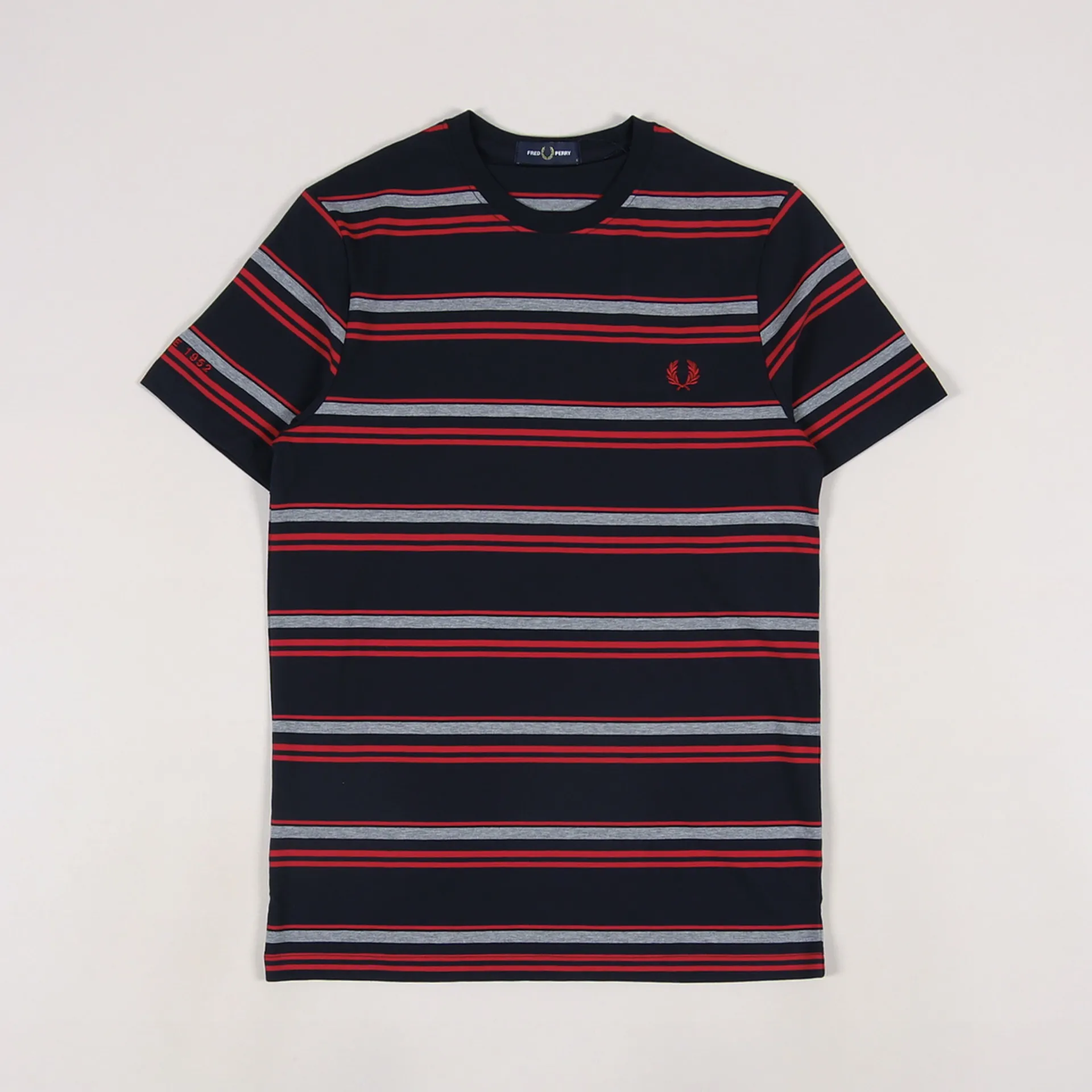 A short sleeve tee from Fred Perry made from a comfortable single jersey of 100% cotton with a ribbed crew neck, a striped pattern and an embroidered logo to the chest.
