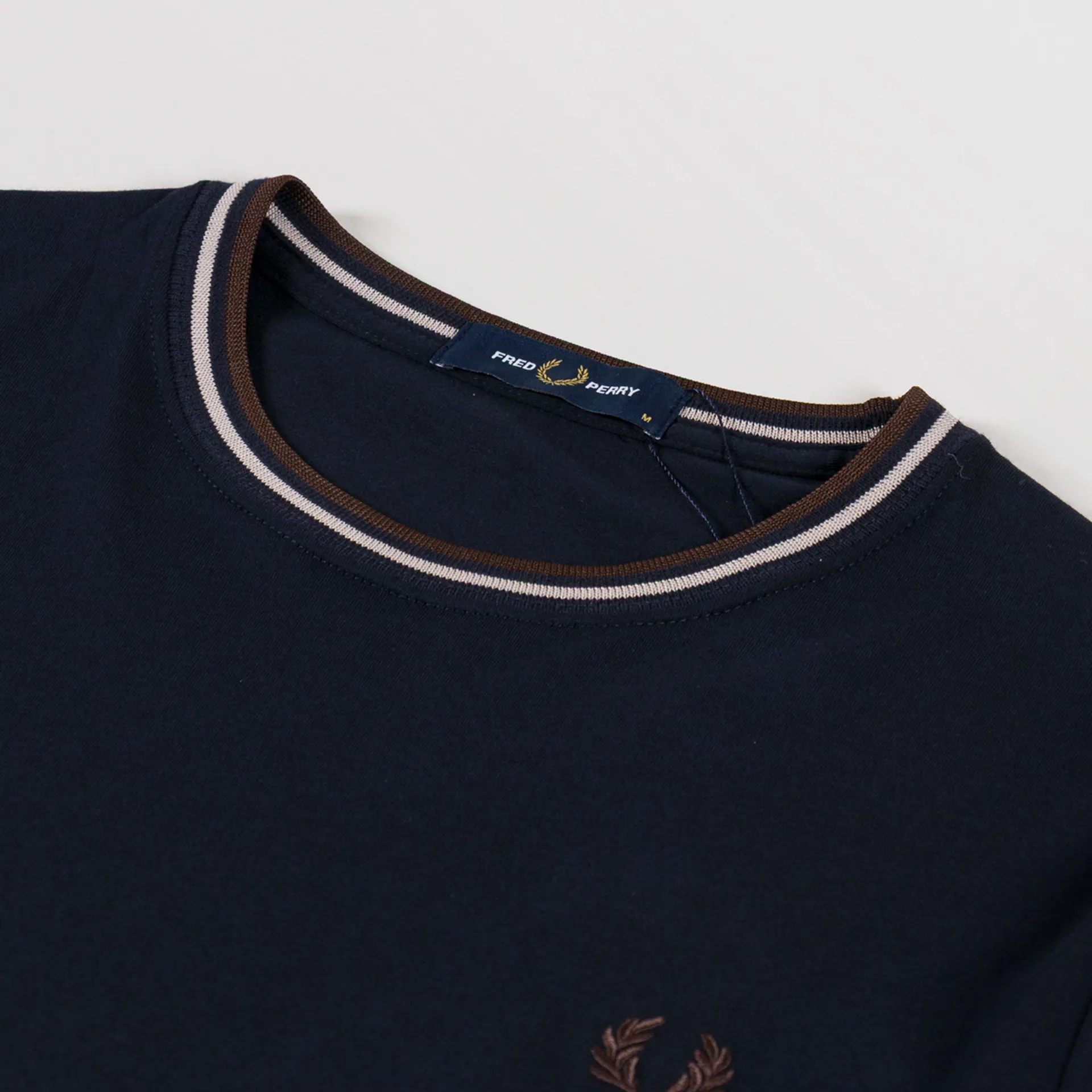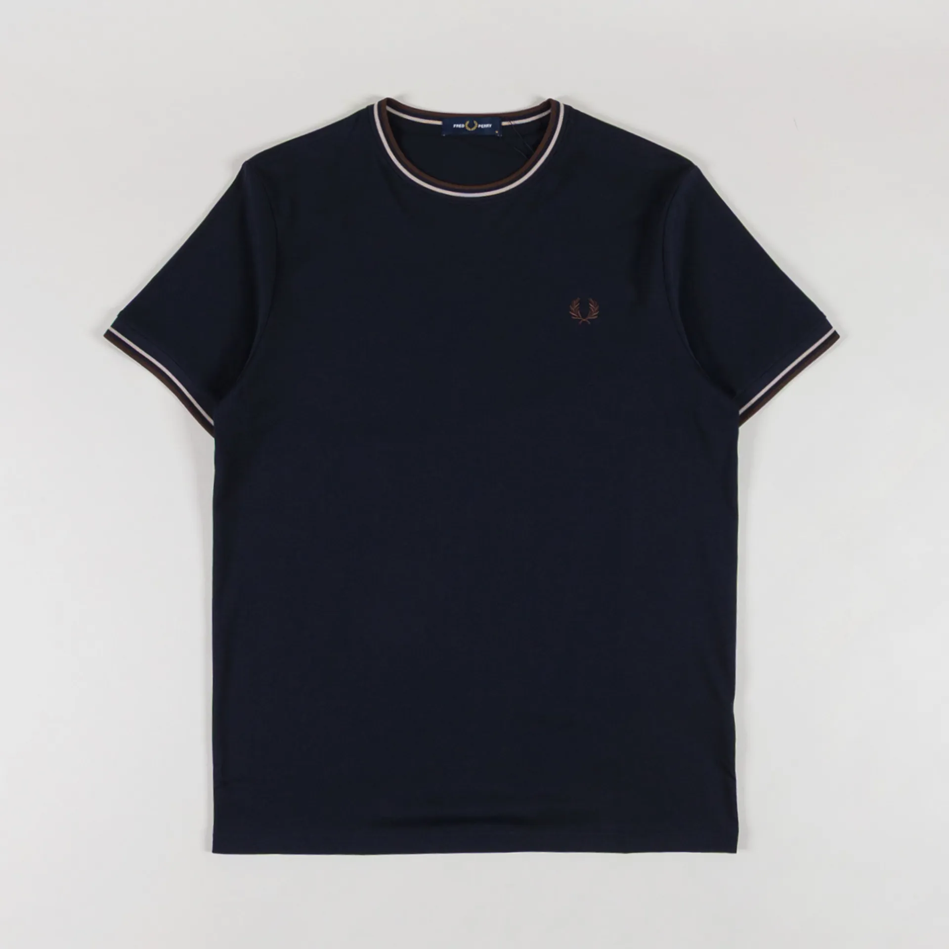 Fred Perry Twin Tipped T Shirt Navy Warm Oat Burnt Tobacco