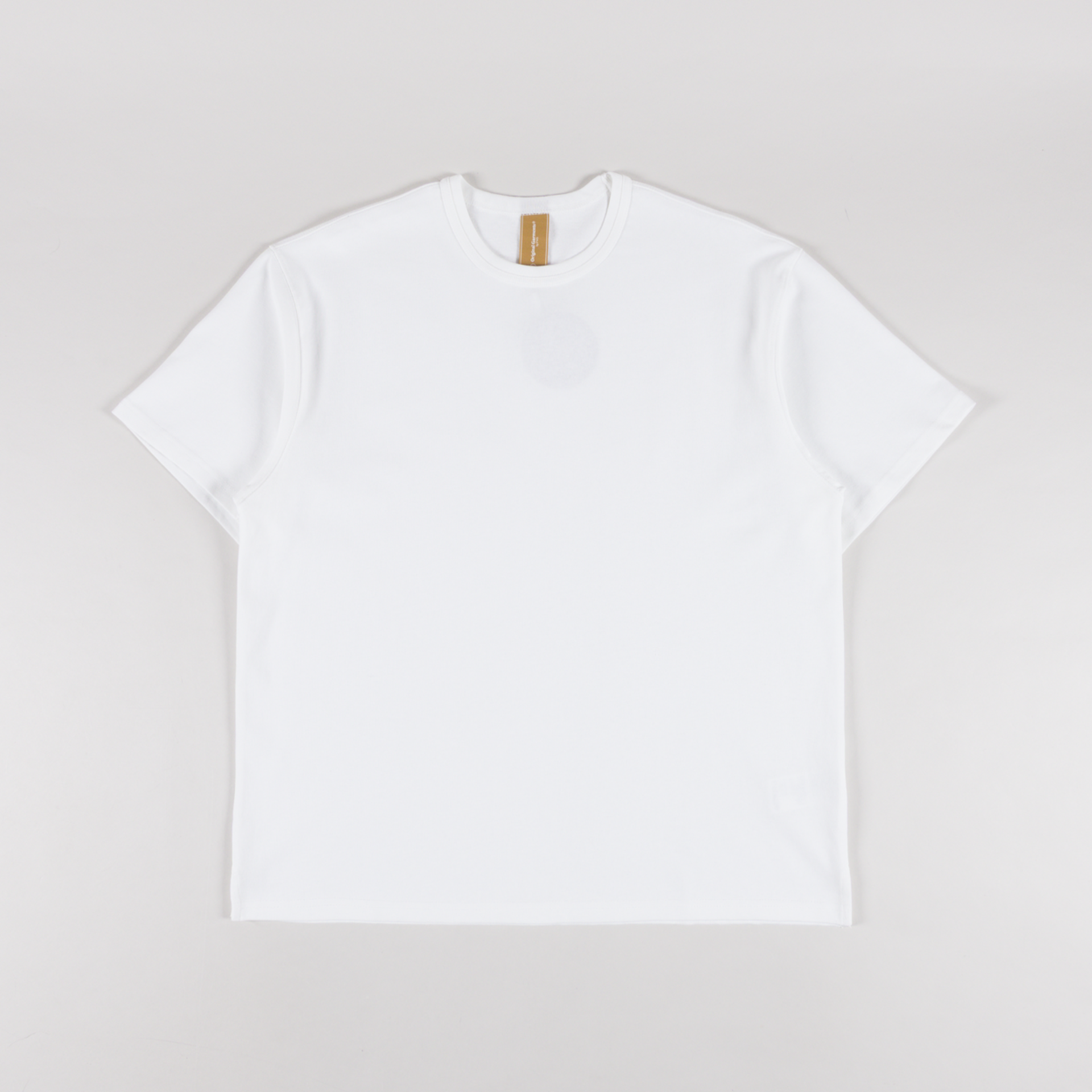 A heavyweight tee from Frizmworks Original Garments line, constructed from high-density, 20-count cotton fabric. It's cut in a loose fit for a laidback silhouette and has a double-layered ribbed crewneck and a straight hem