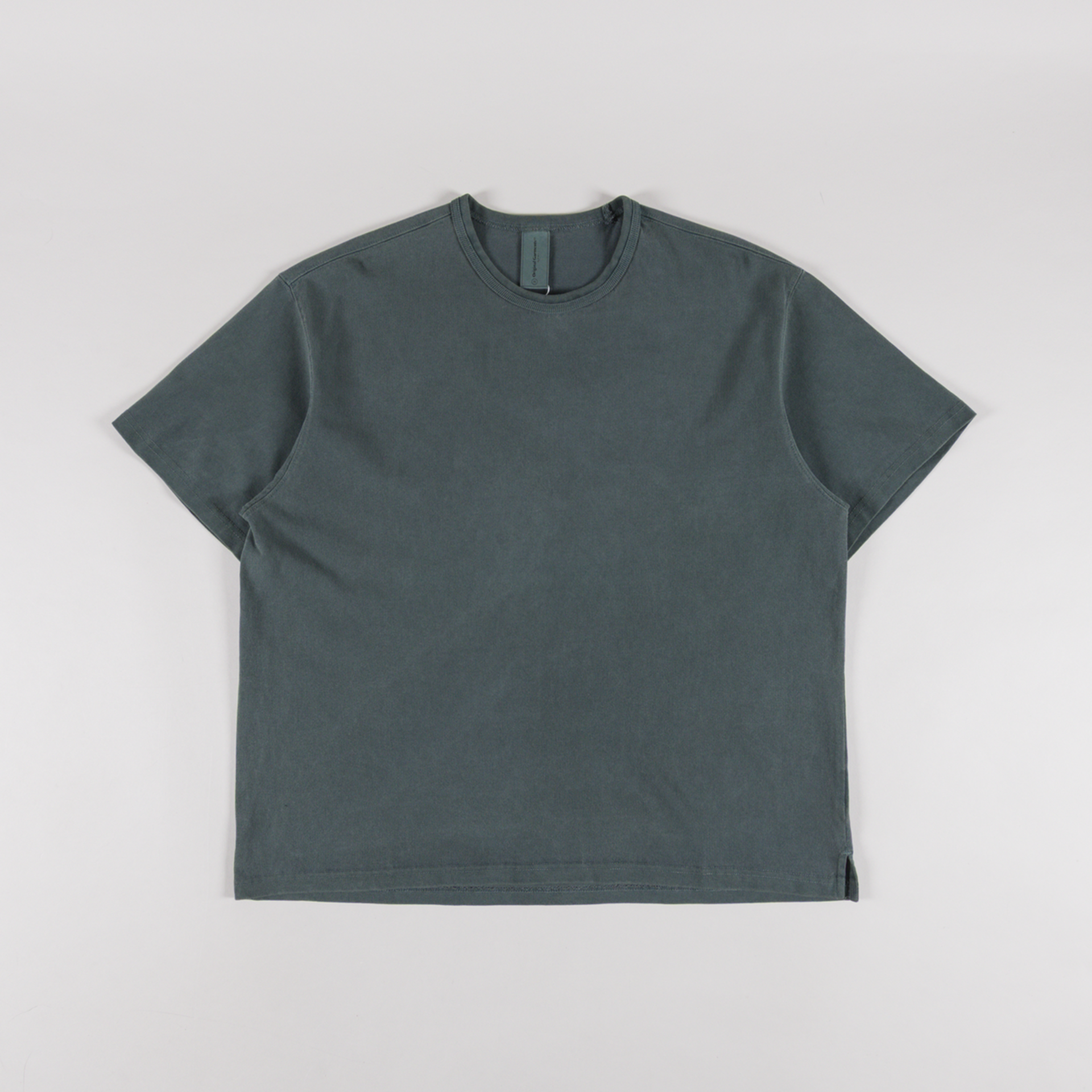 The Pigment Dyeing Half Tee from Frizmworks' Original Garments collection has been cut in a loose, boxy fit for a laidback look. It has been constructed from 375GSM cotton that has been heavily garment-dyed for a worn-in look and pre-shrunk to prevent further shrinkage. It features a ribbed neckline, a straight hem and splits at either side of the hem.