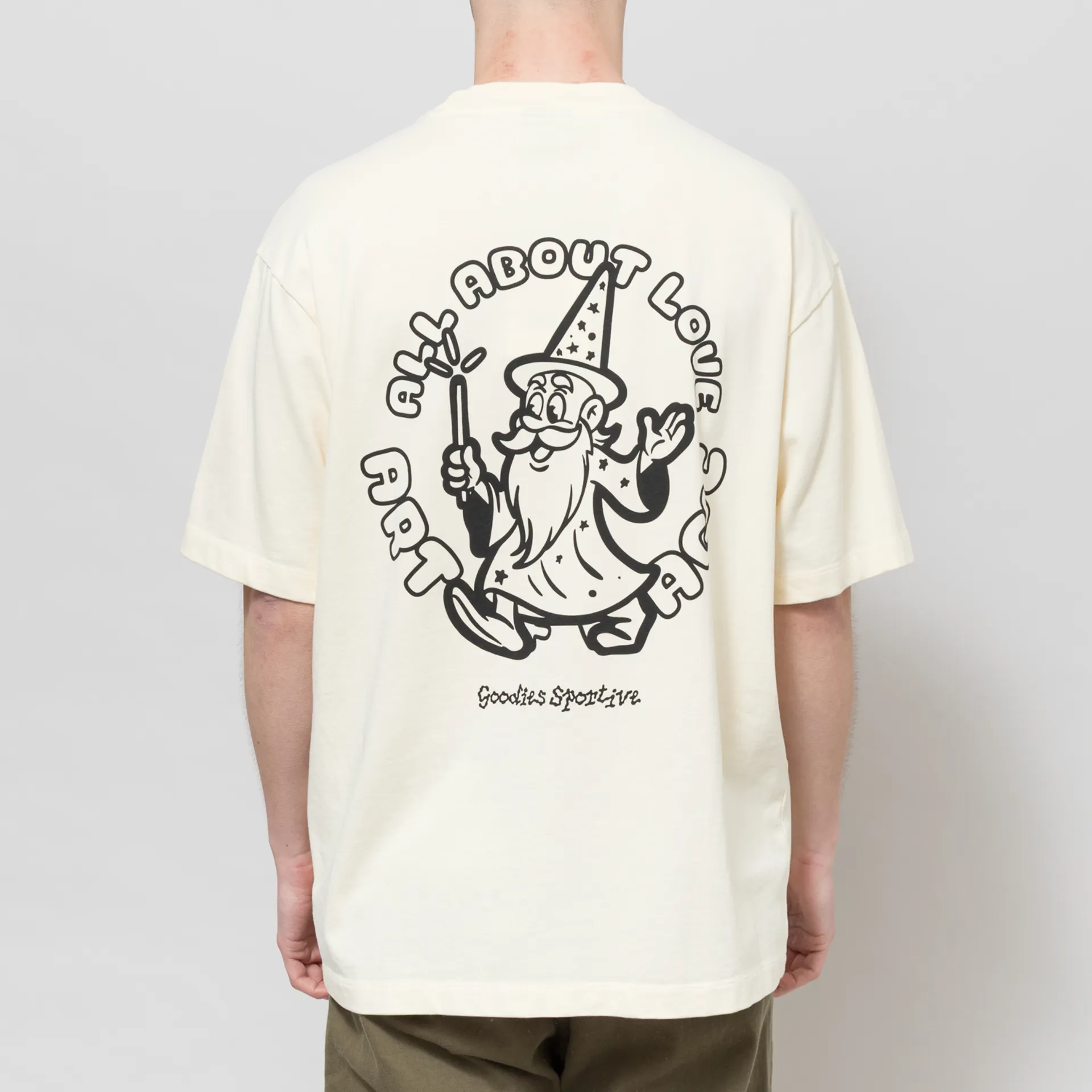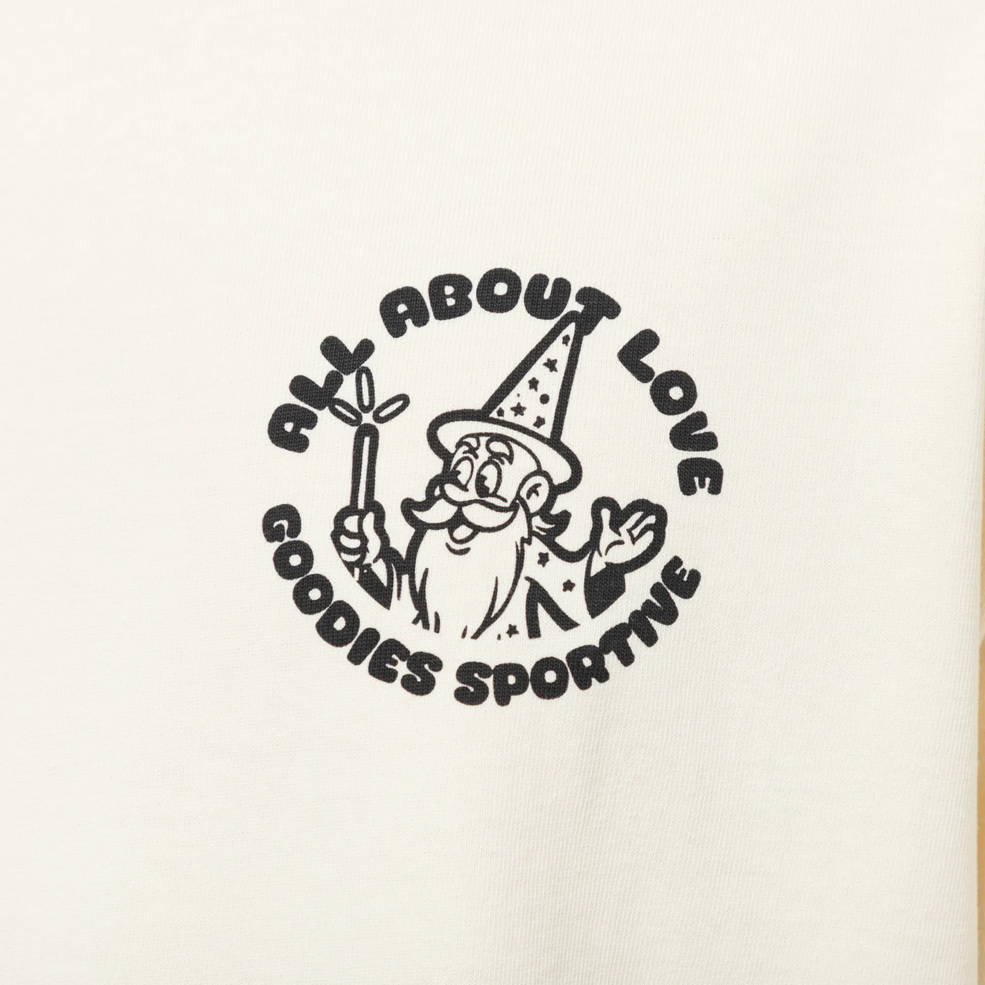 A graphic tee from Goodies Sportive, constructed from premium heavyweight cotton and cut in an oversized fit for a laidback silhouette. It features a ribbed crewneck, a straight hem and is complete with some cool prints across the back and chest.