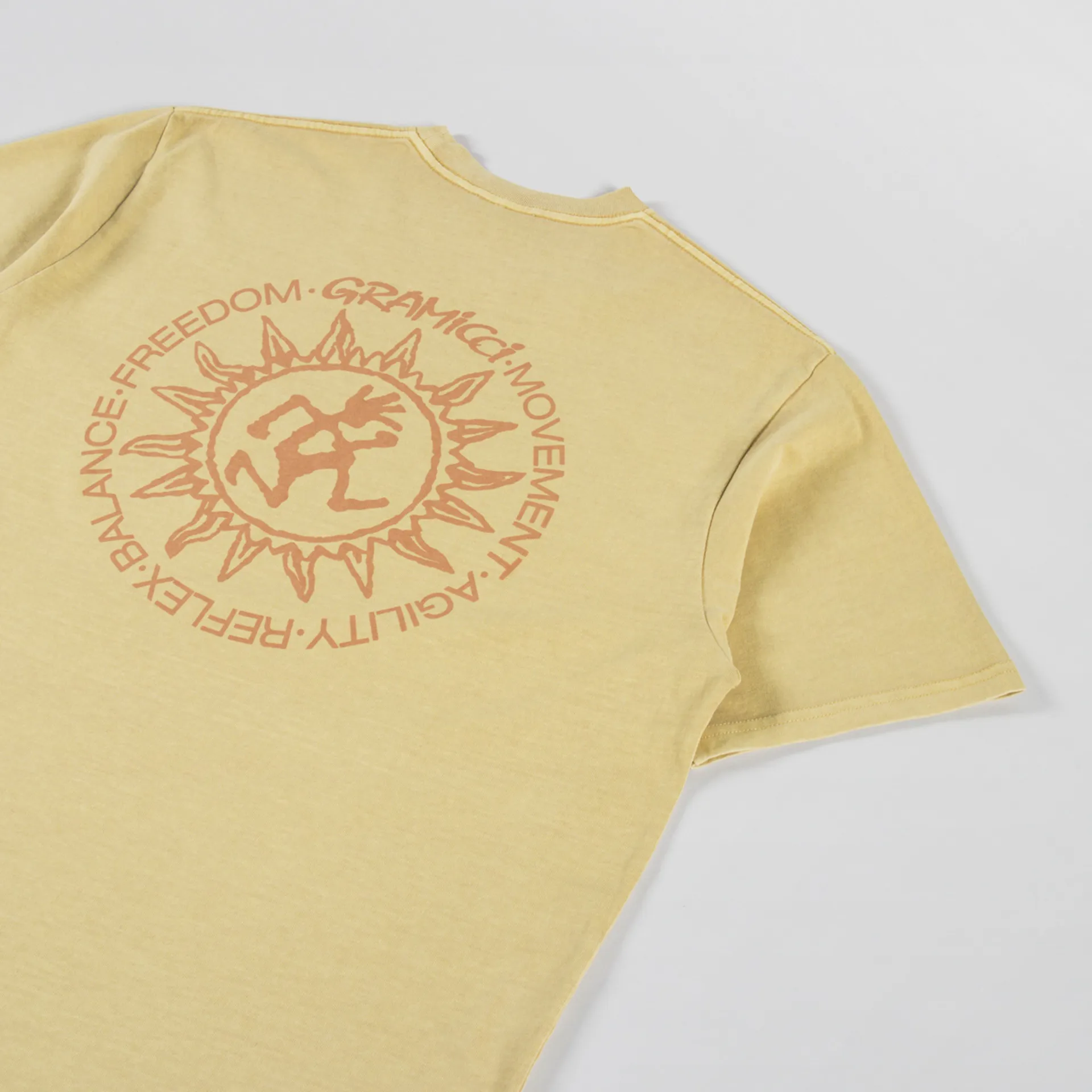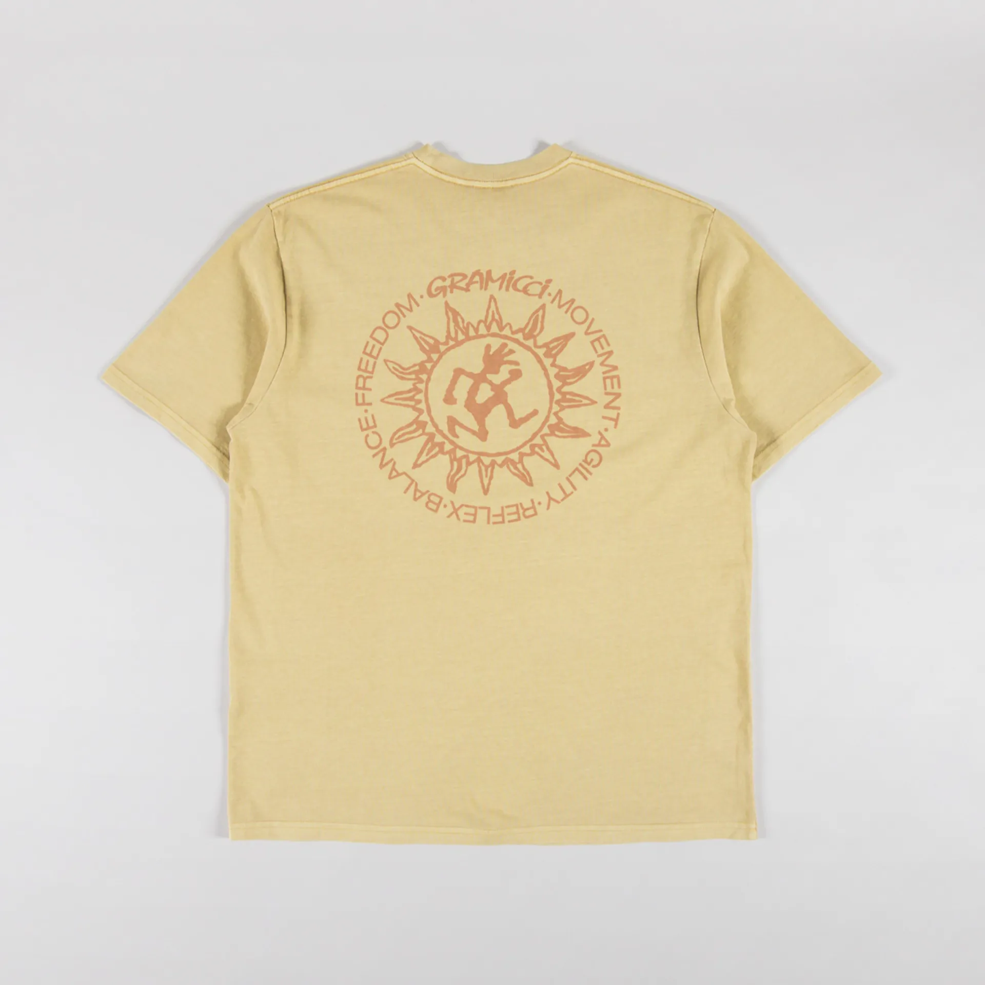 A graphic tee from Gramicci, cut in a slightly relaxed, boxy fit for a laidback silhouette and is constructed from soft eco cotton. Featuring a ribbed crewneck, a straight hem and is finished off with some awesome graphics to the chest and back.