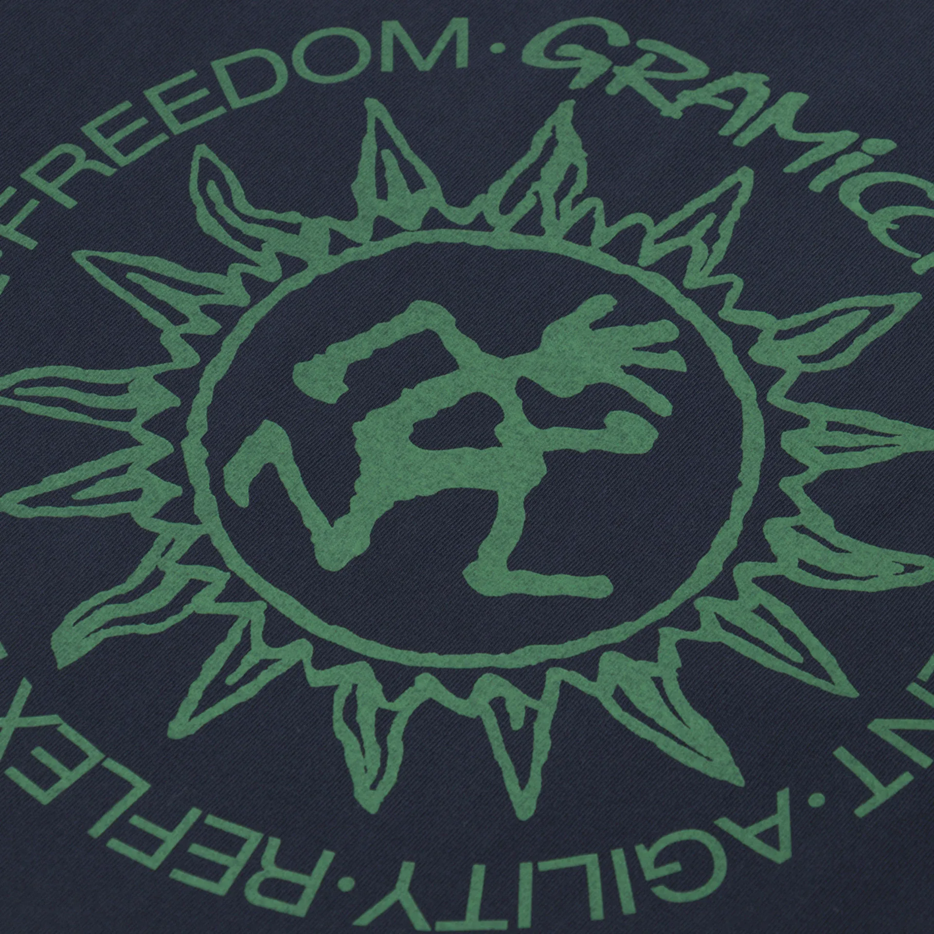 A graphic tee from Gramicci, cut in a slightly relaxed, boxy fit for a laidback silhouette and is constructed from soft eco cotton. Featuring a ribbed crewneck, a straight hem and is finished off with some awesome graphics to the chest and back.