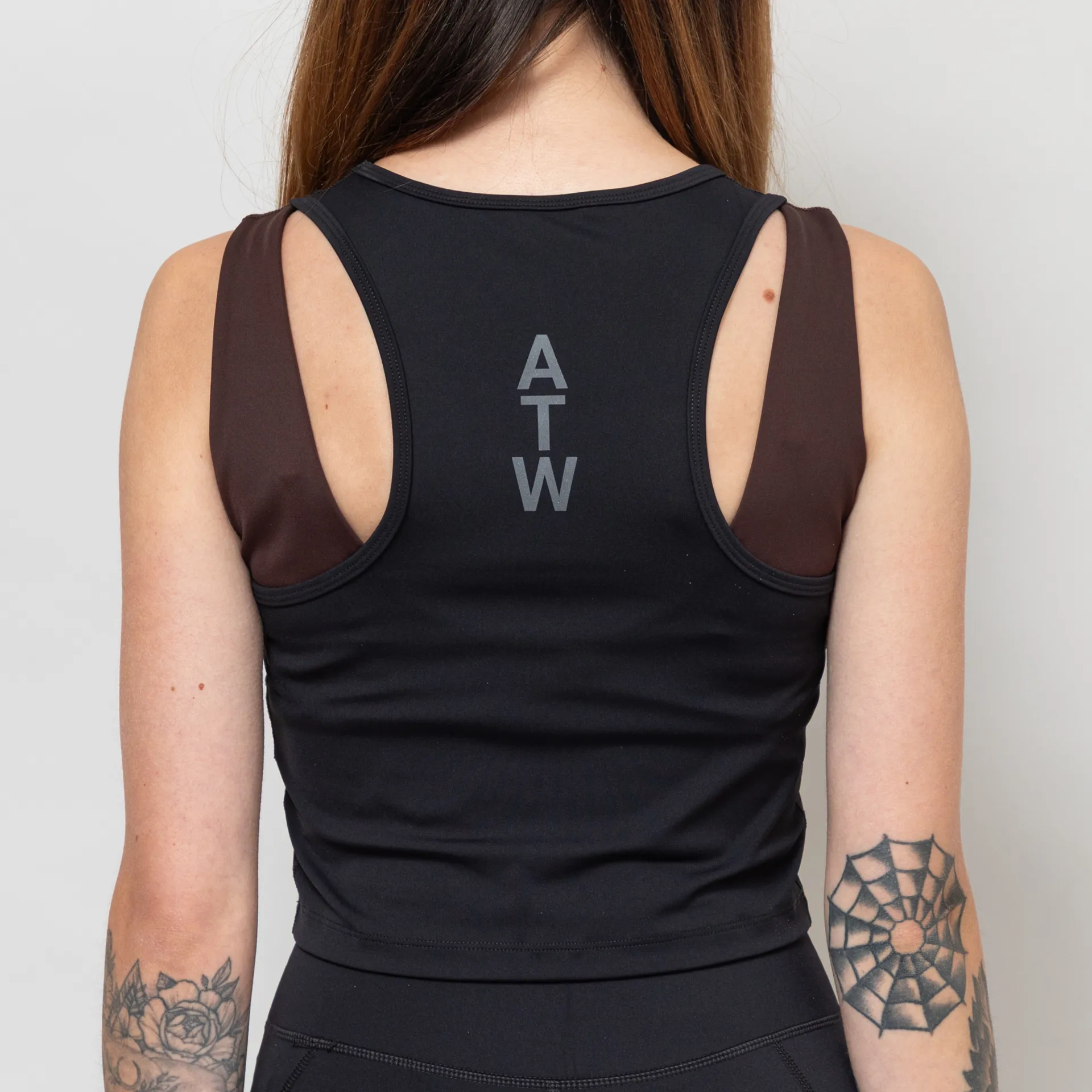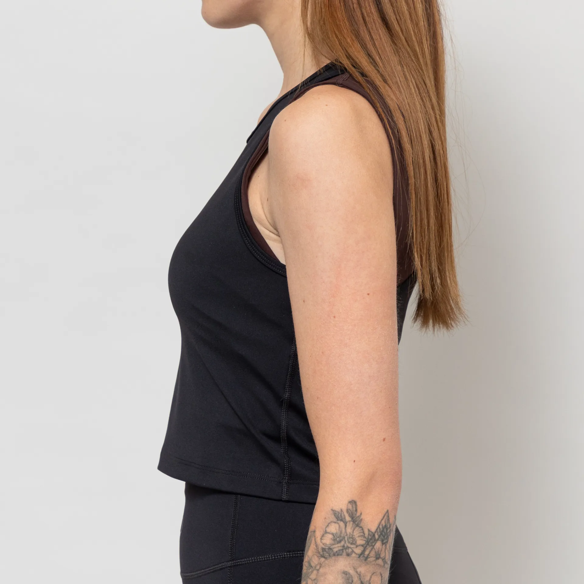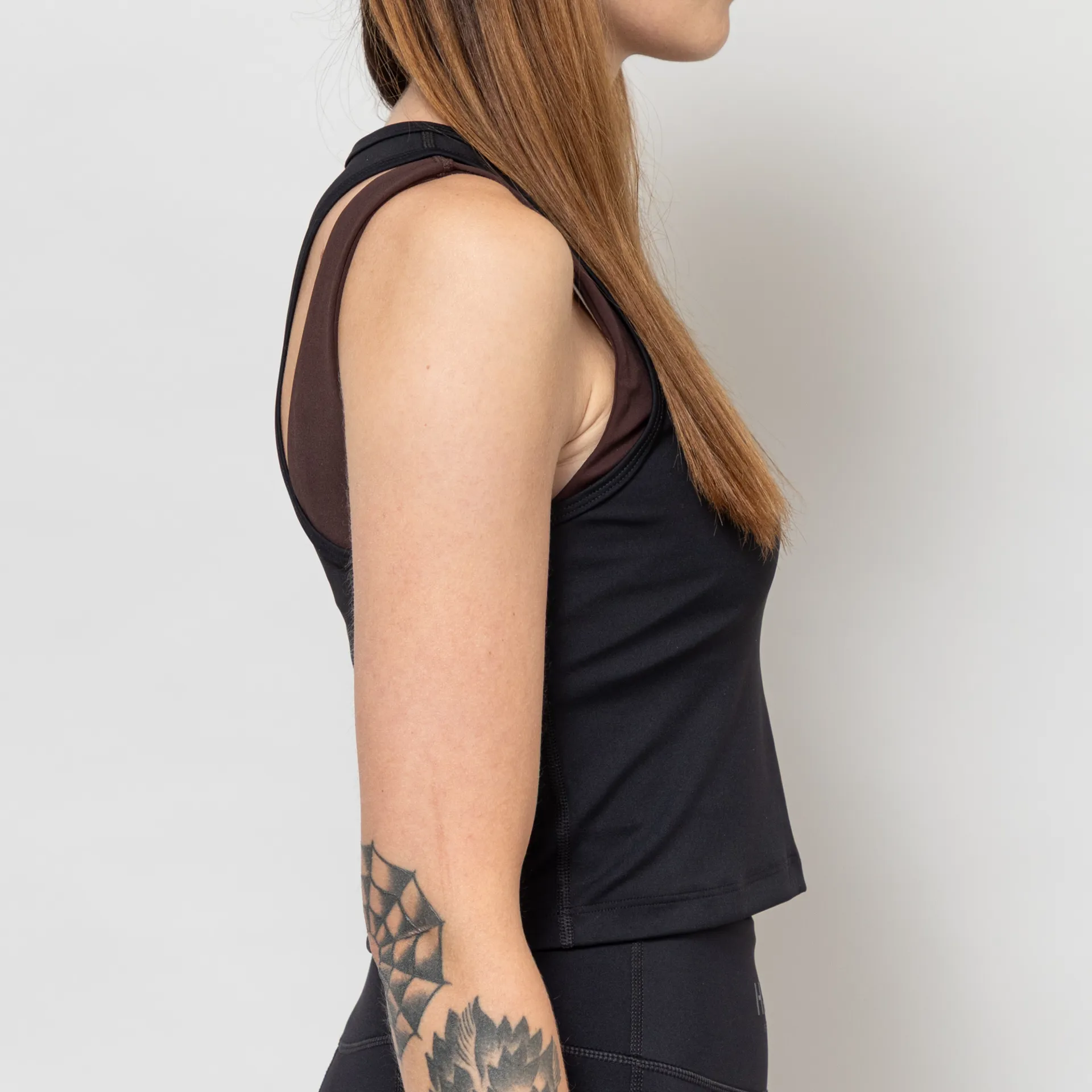 A sports top from Halo, cut in a fitted, cropped fit with no support.