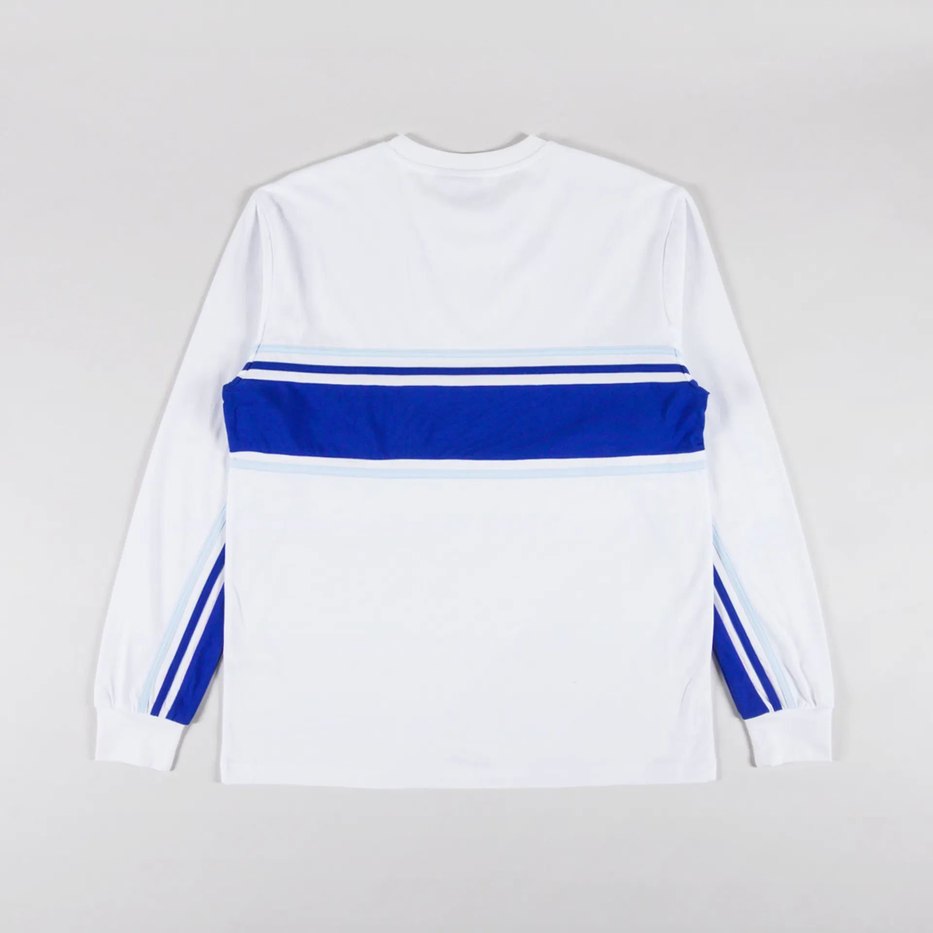 A long sleeve tee from Helas, cut in a relaxed fit for a casual silhouette and constructed from soft cotton with contrast striping throughout. Featuring a ribbed crewneck and cuffs, with an embroidered Helas logo to the centre front.