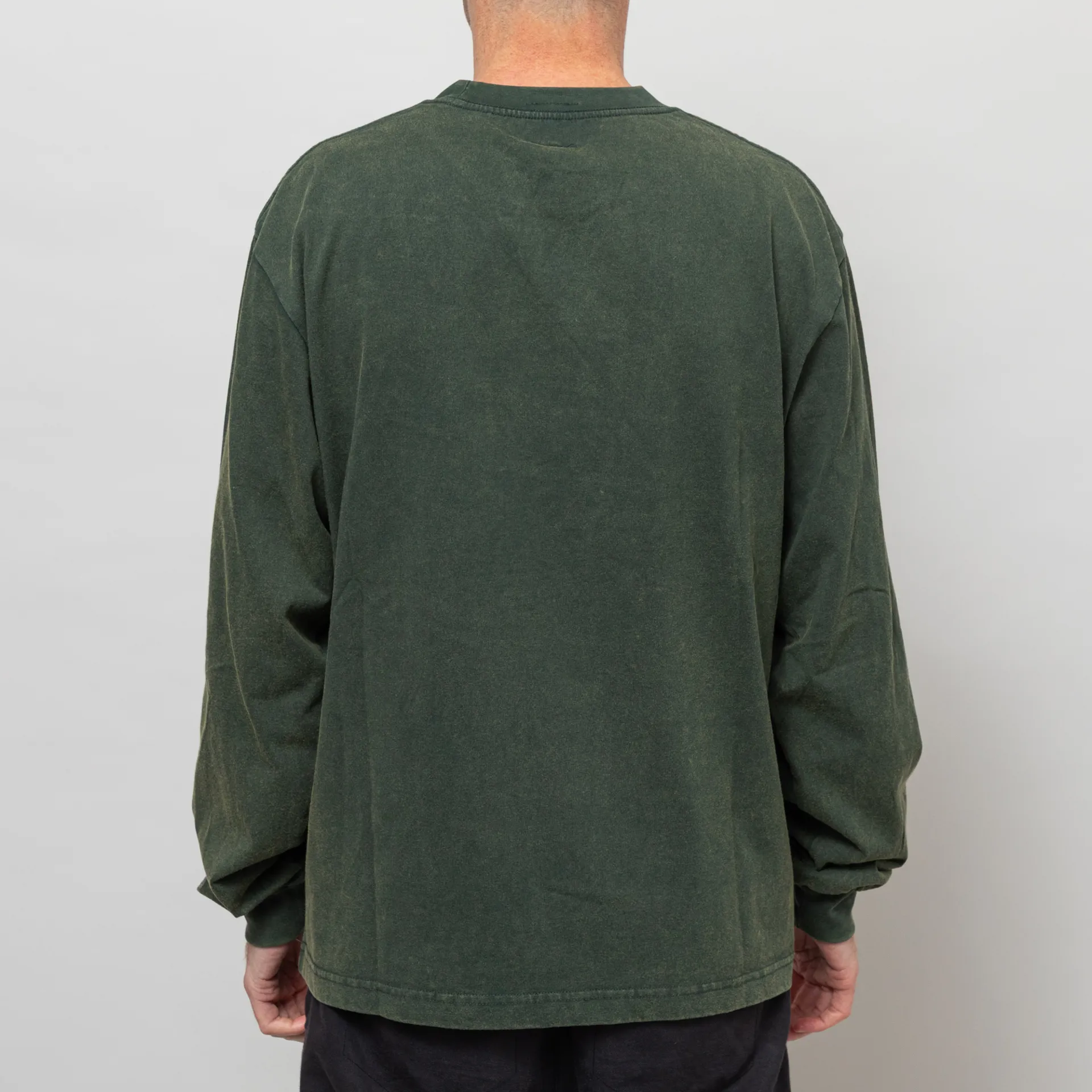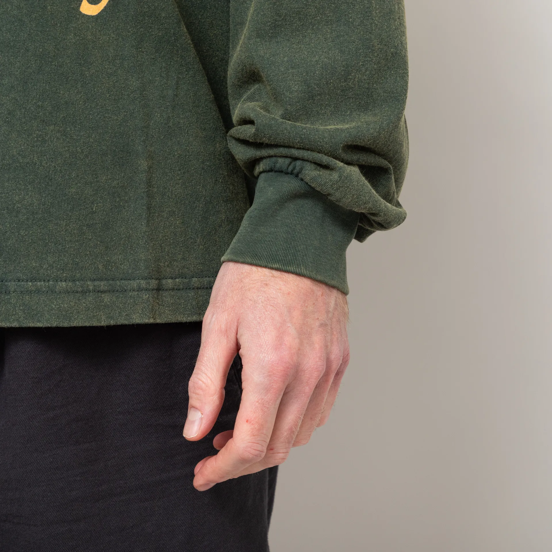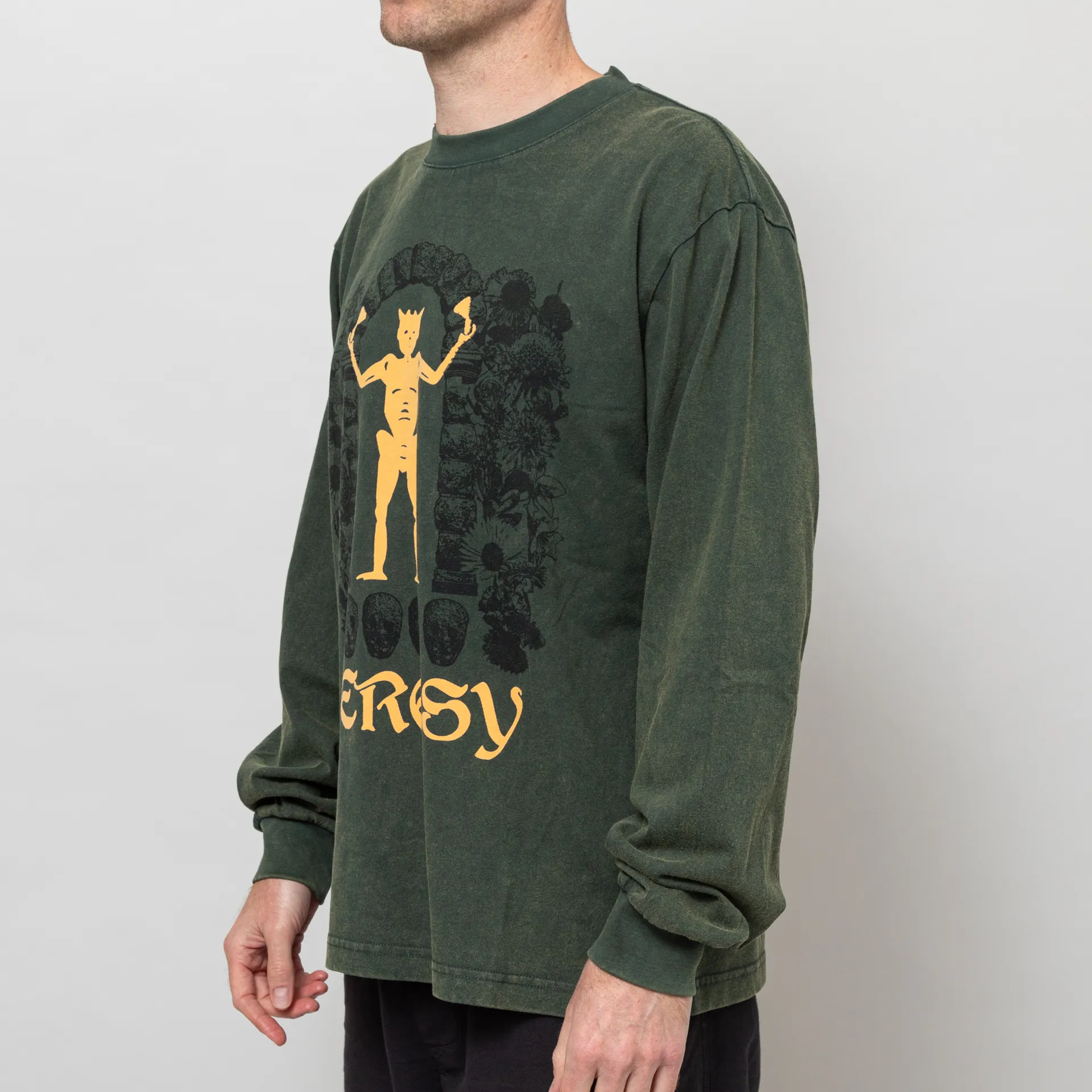 A long sleeve graphic tee from Heresy, cut in a boxy fit for a laidback silhouette and constructed from heavyweight cotton, garment-washed for a worn-in look.