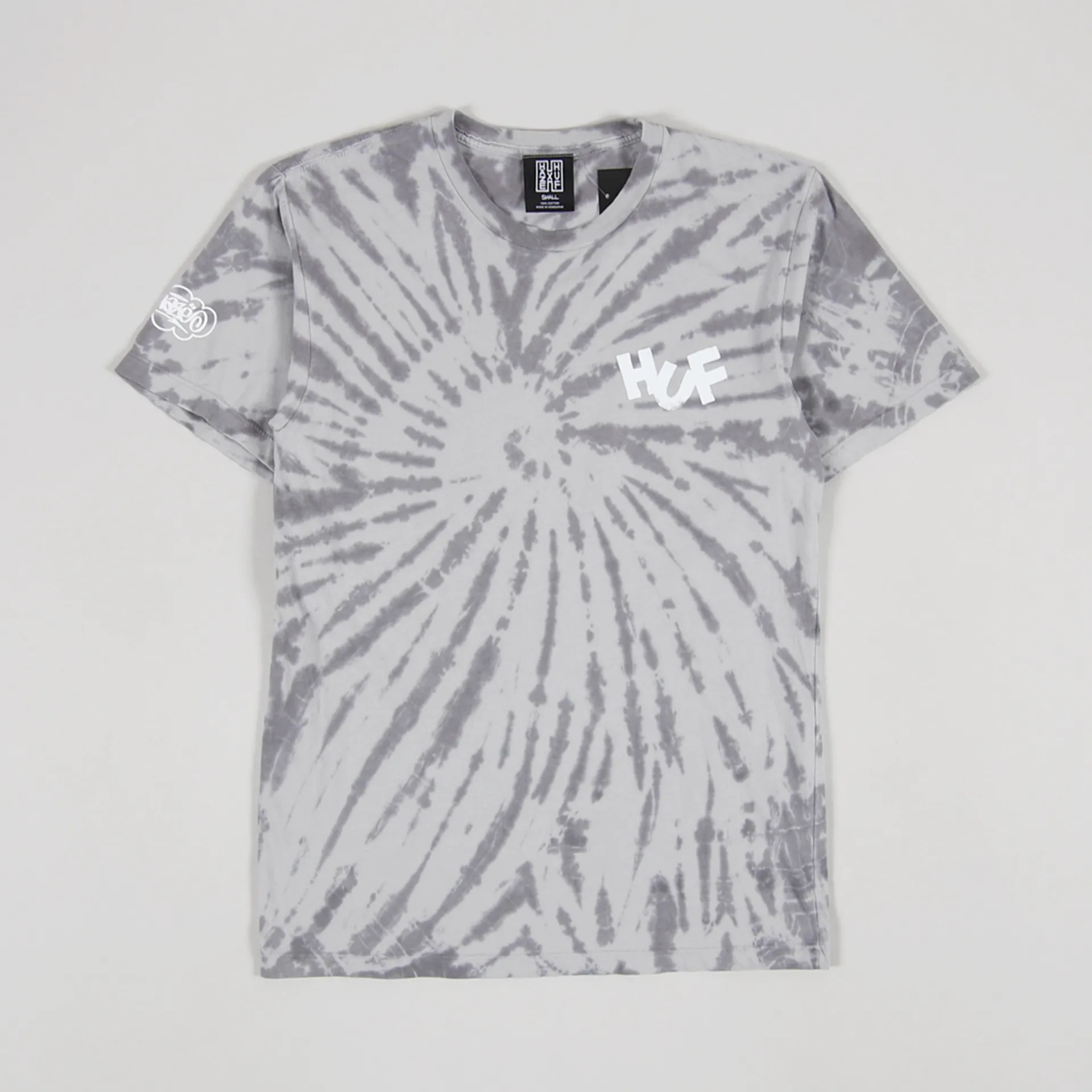 A short sleeve tee from HUF Worldwide made from a comfortable single jersey of 100% cotton with a ribbed crew neck, a tie dye design and graphic logo prints to the chest and back.