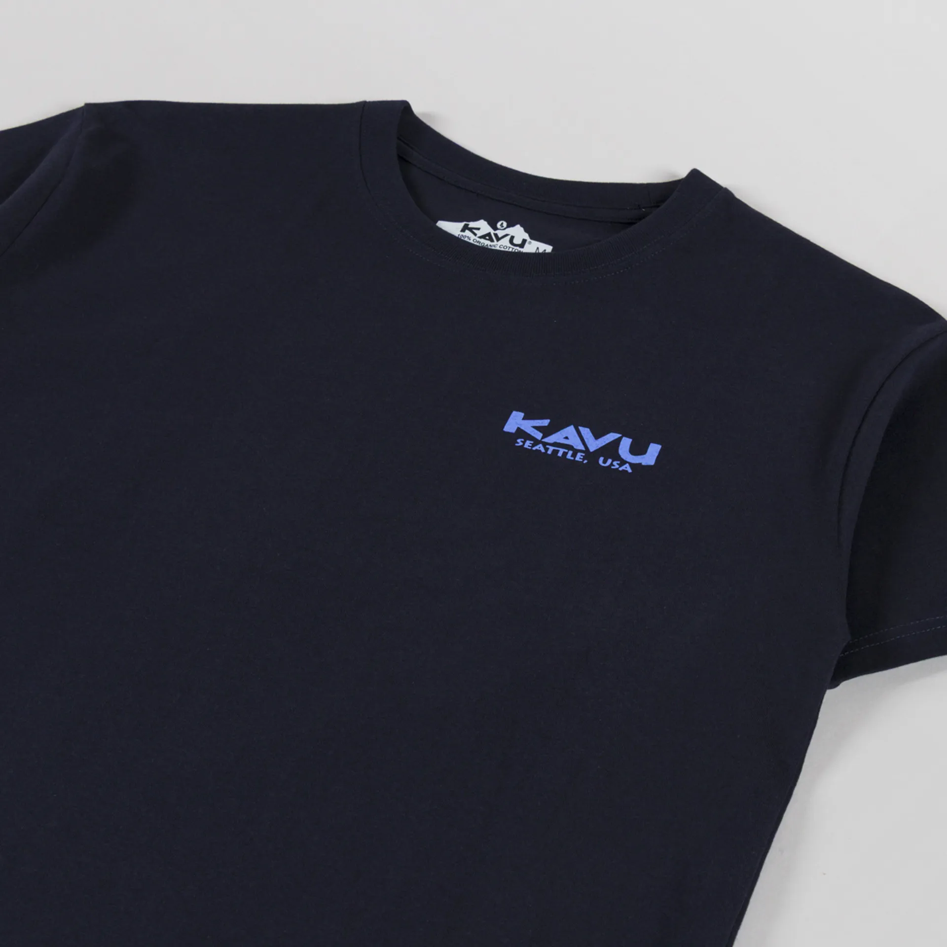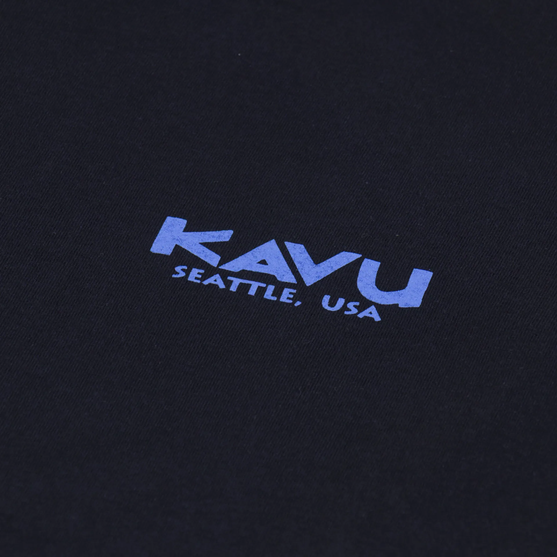 A graphic tee from Kavu, constructed from soft 100% cotton and cut in a regular fit for everyday wear. It has a ribbed crewneck and a straight hem, with the classic Kavu logo at the chest and finished with a large graphic print across the back.