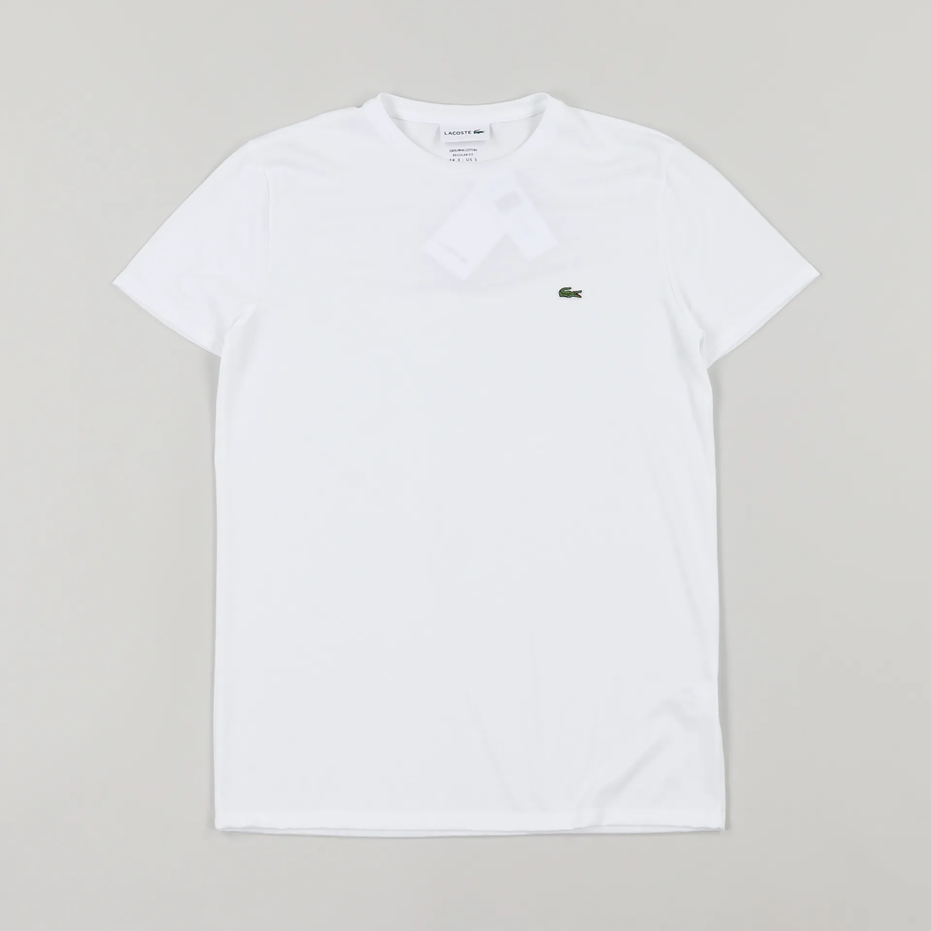 A short sleeve tee from Lacoste made from a soft and comfortable 100% pima cotton jersey with a ribbed crew neck and an embroidered crocodile logo to the chest.