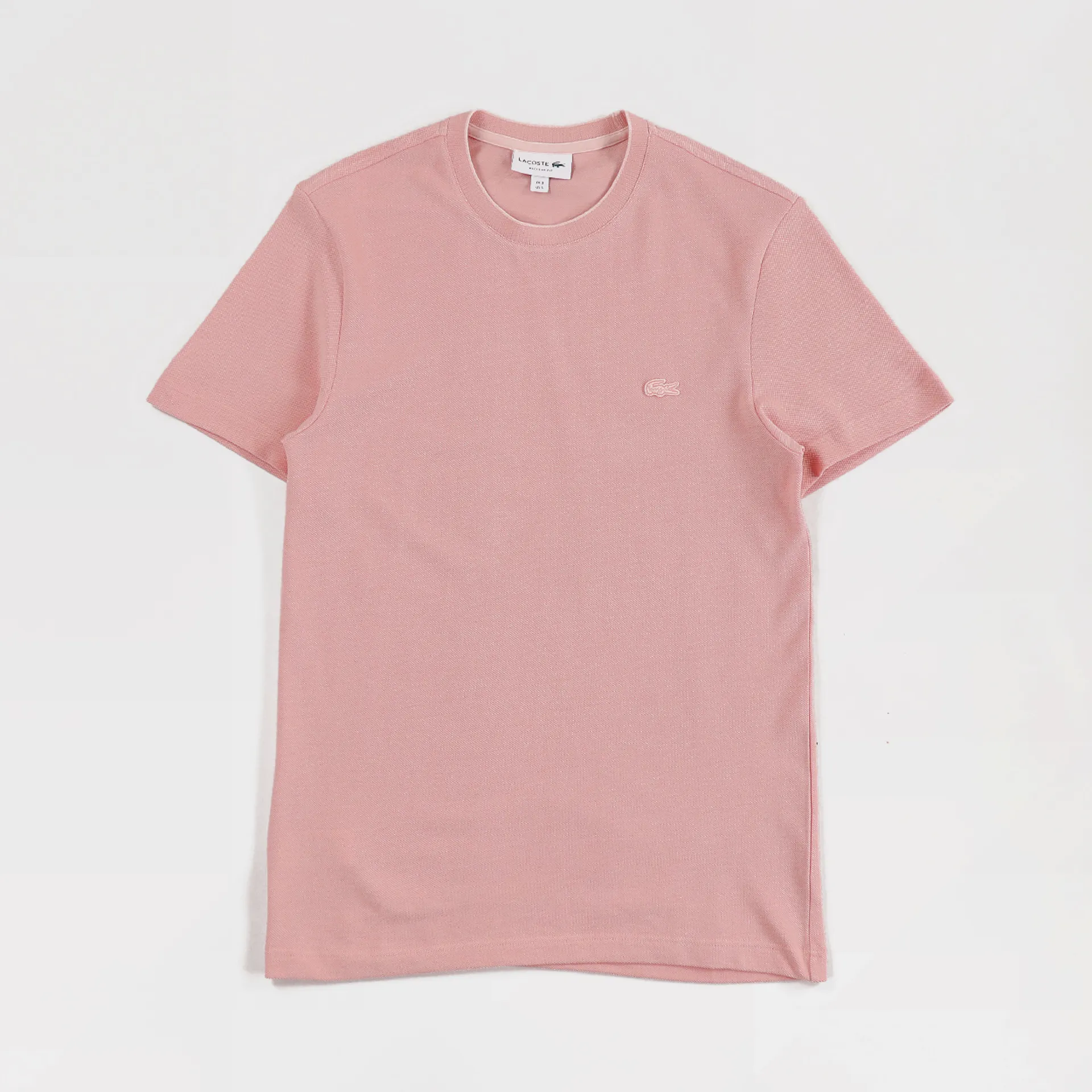 A short sleeve tee from Lacoste made from a super comfortable and sporty pique weave of 100% cotton with a ribbed crew neck and a tonal embroidered crocodile logo to the chest.