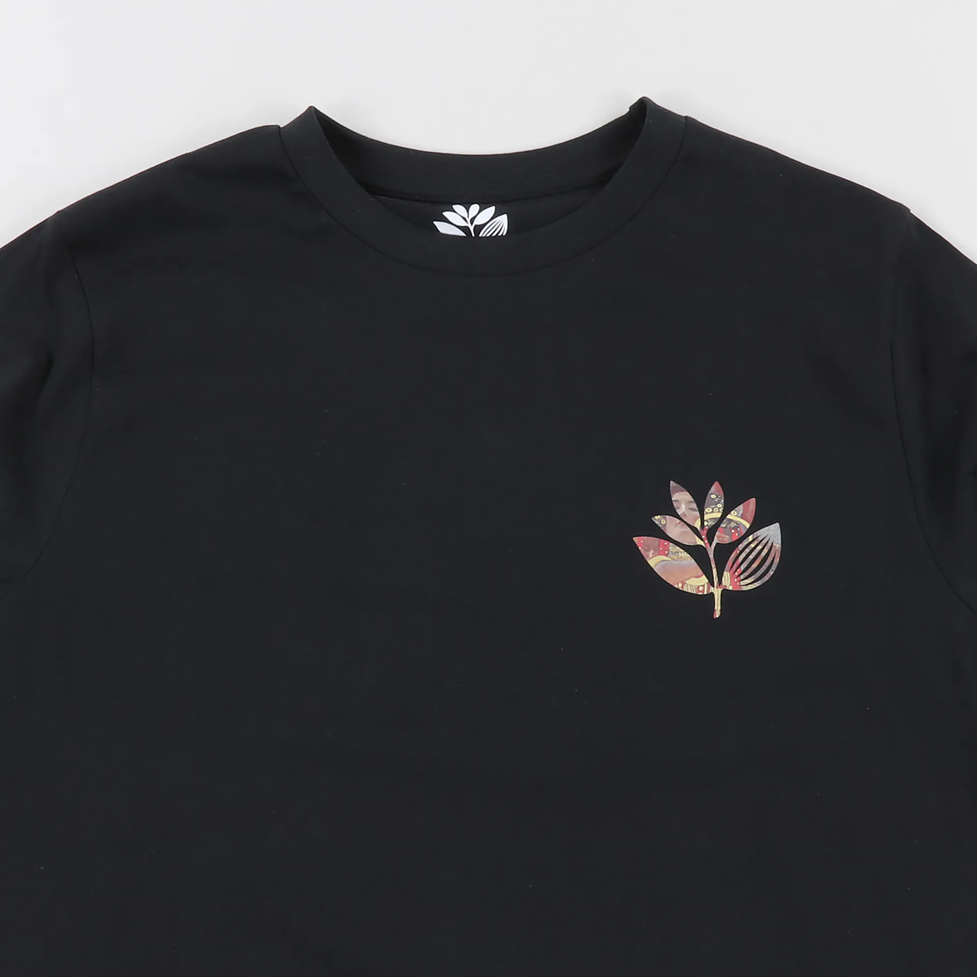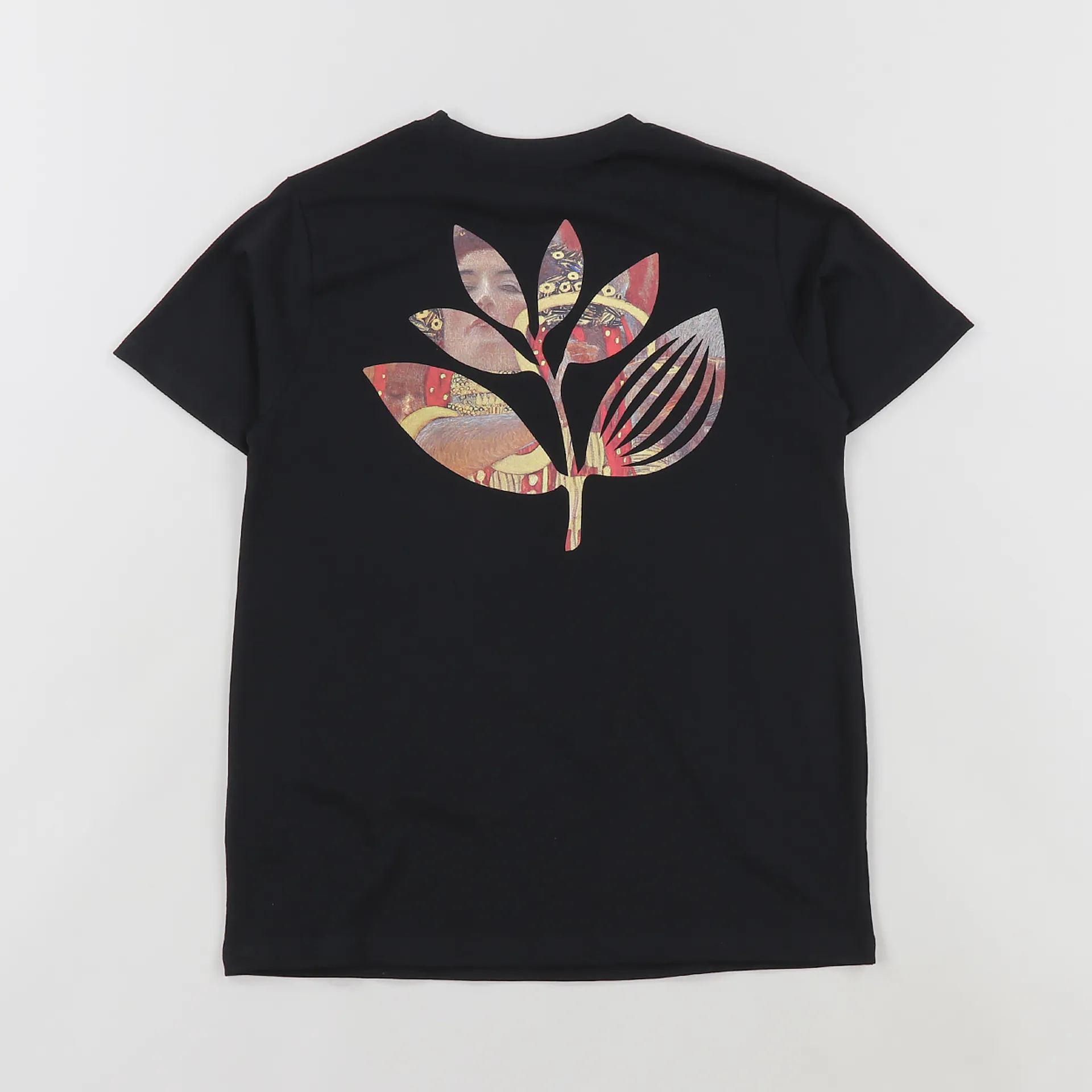 A short sleeved tee from Magenta Skateboards featuring their leaf graphic print to the back, blended with some classic artwork. Made from a 100% soft single jersey of cotton.