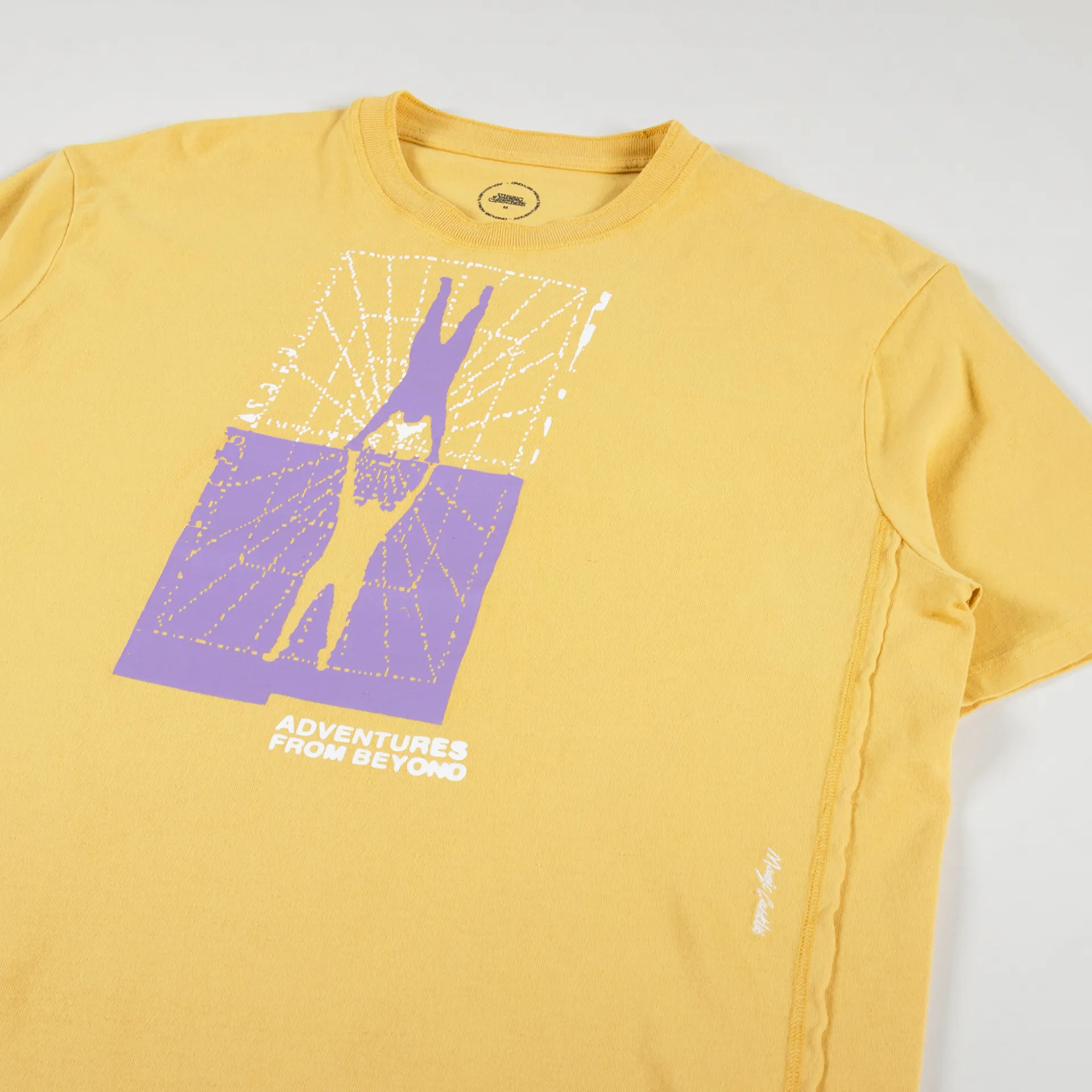 It is made from a soft and comfortable 100% cotton single jersey, with a ribbed crew neck collar, garment washed to give a live-in feel and finished off with a silk thread embroidered logo detail and screen printed graphics on the front.