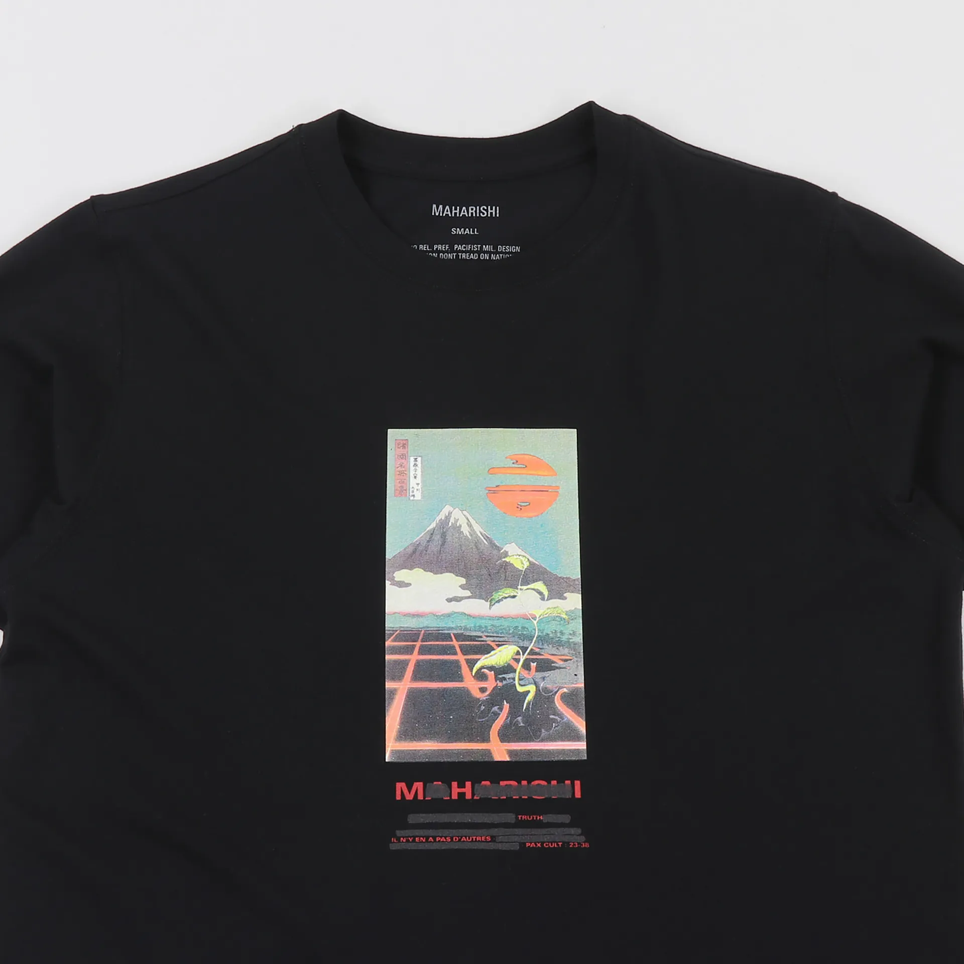 A short sleeve tee from Maharishi made from a midweight cut of 100% cotton in a comfortable jersey with an original Mount Tron graphic to the front.