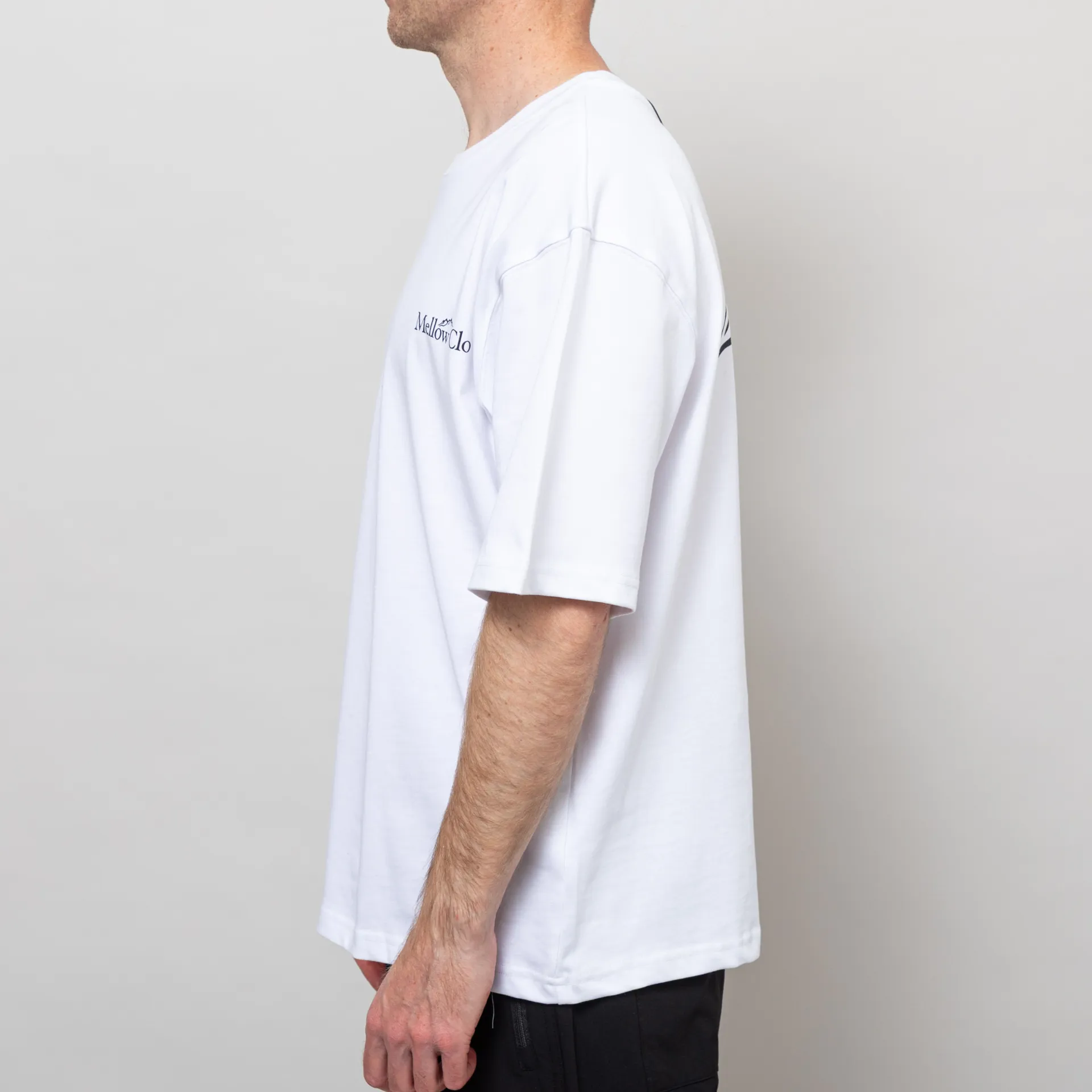 This short-sleeved tee from Mellow Clo is cut in a loose, boxy fit for a laidback silhouette. Constructed from soft 100% cotton, with a ribbed crewneck and a straight hem. Finished off with the classic Mellow Clo logos printed at the chest and back.