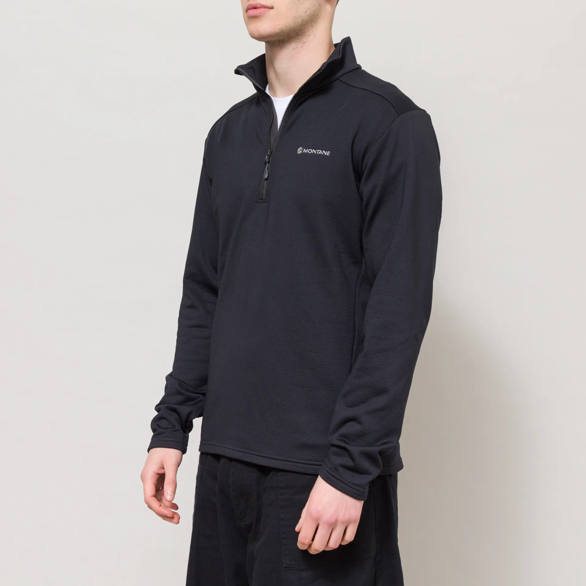 A lightweight fleece pullover from Montane, cut in a slightly slim fit for everyday comfort and constructed with THERMO GRID FLEECE, a brushed-back, gridded fabric that traps warm air close to the body whilst drawing moisture and excess heat away from the body for breathability. It features a YKK NATULON VISLON zipper, leading to a classic stand collar, with a straight hem and an embroidered Montane logo at the chest.