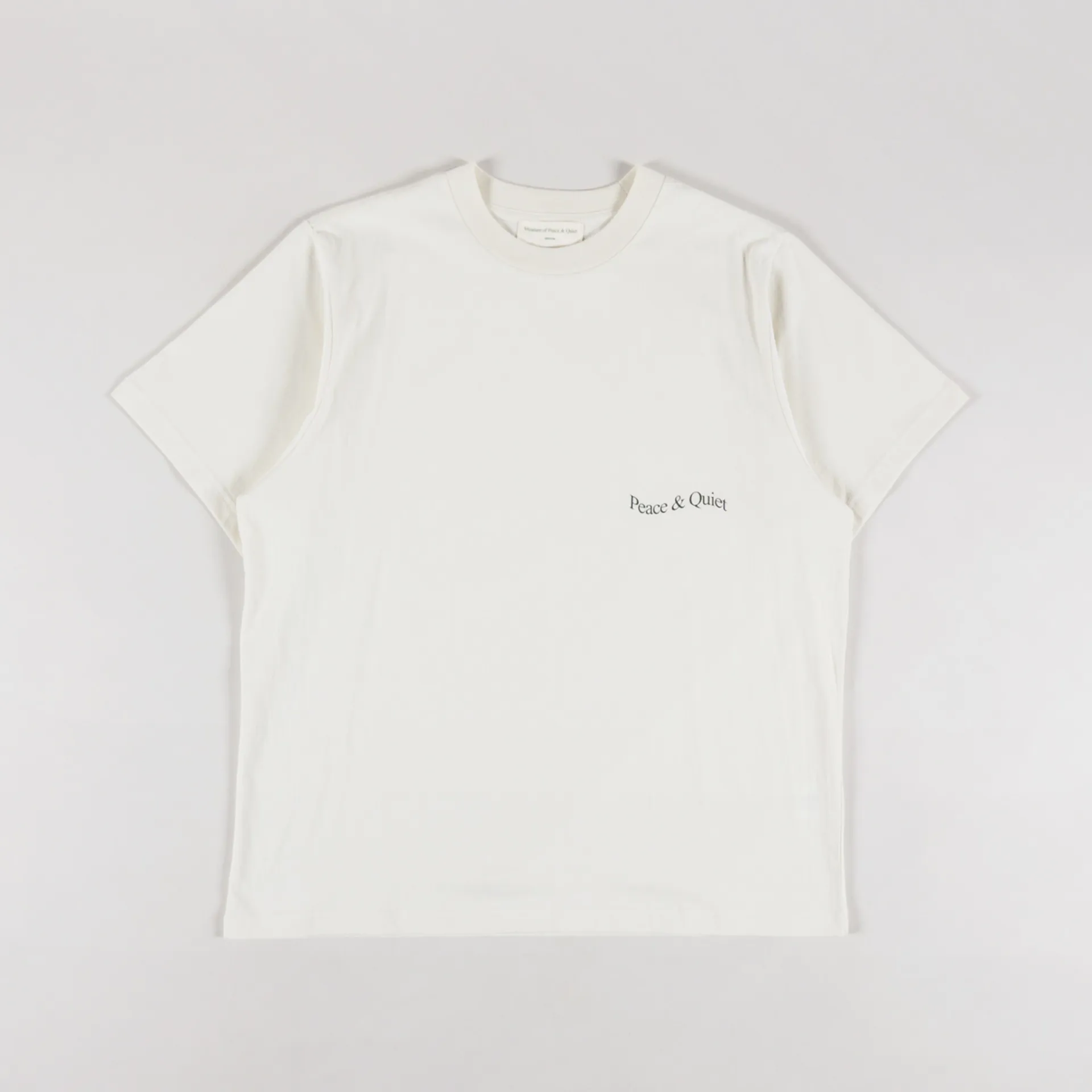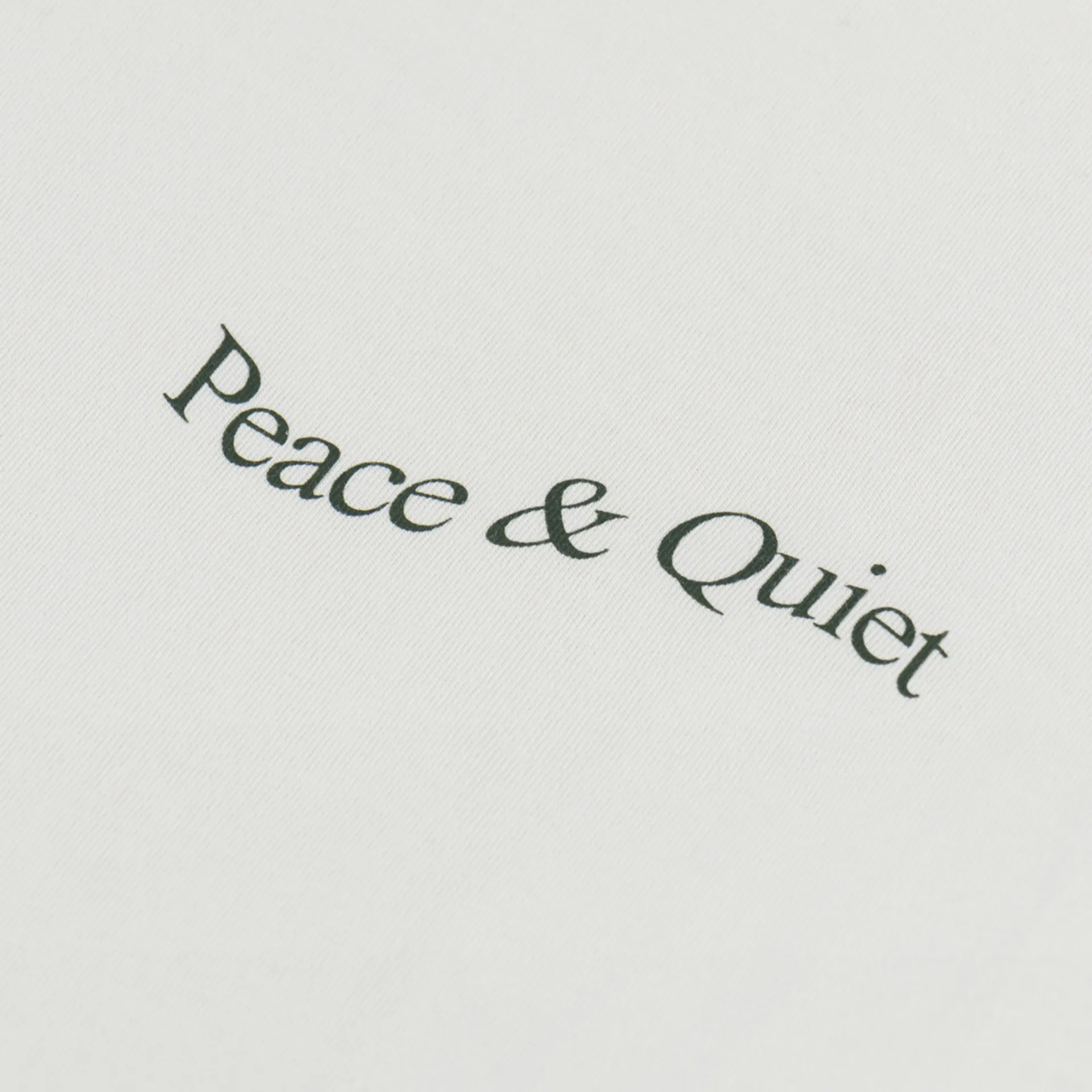 The Wordmark Tee has been cut in a regular, slightly boxy fit for everyday comfort, crafted from a soft and durable 100% cotton with a ribbed crewneck and straight hem. Finished with a Peace & Quiet logo to the front with lower chest placement.