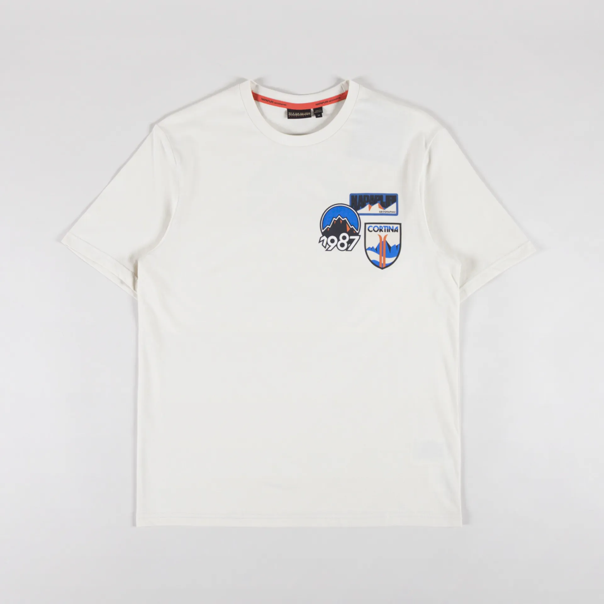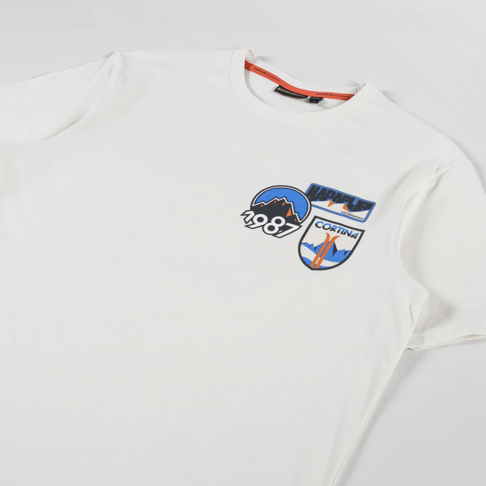 A graphic tee from Napapijri, constructed from soft cotton and cut in a relaxed fit for a casual look. It features a ribbed crewneck, a straight hem and is finished with some colourful prints to the chest and back.