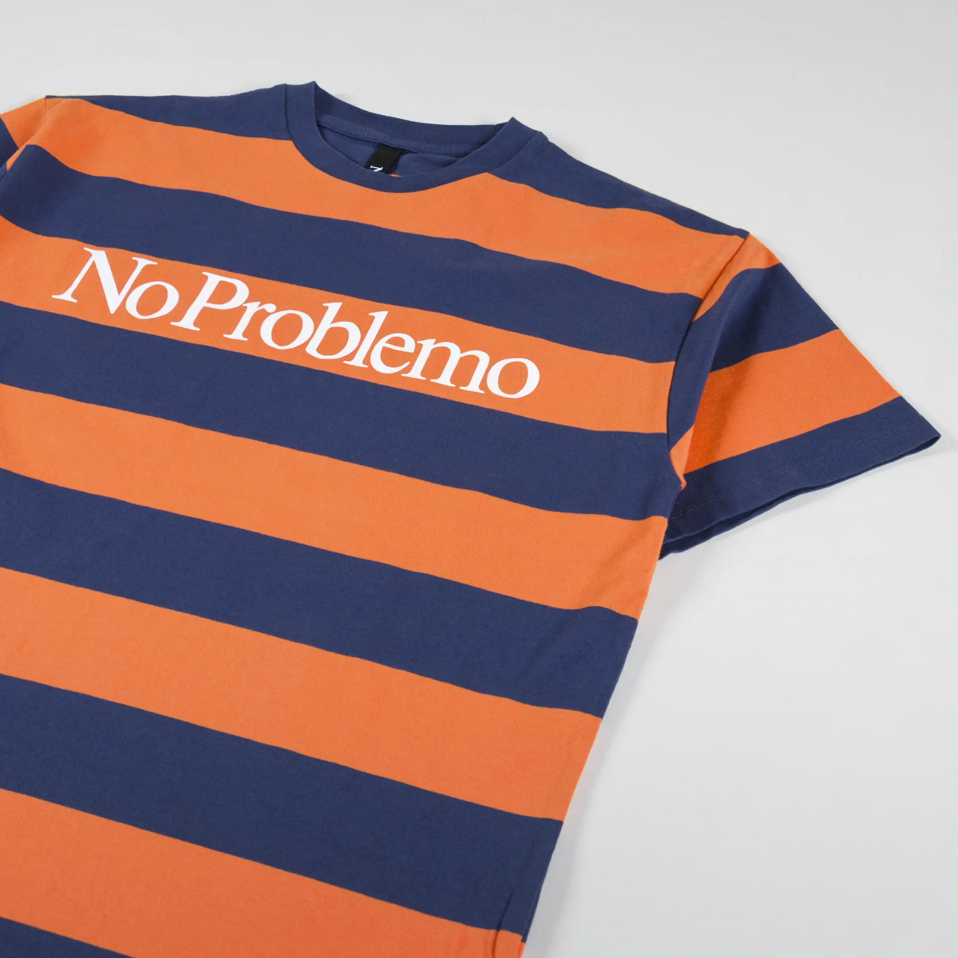 This midweight jersey is made from a soft and comfortable 100% cotton, with a ribbed crewneck, finished with a bold striped design with the iconic No Problemo logo to the chest.