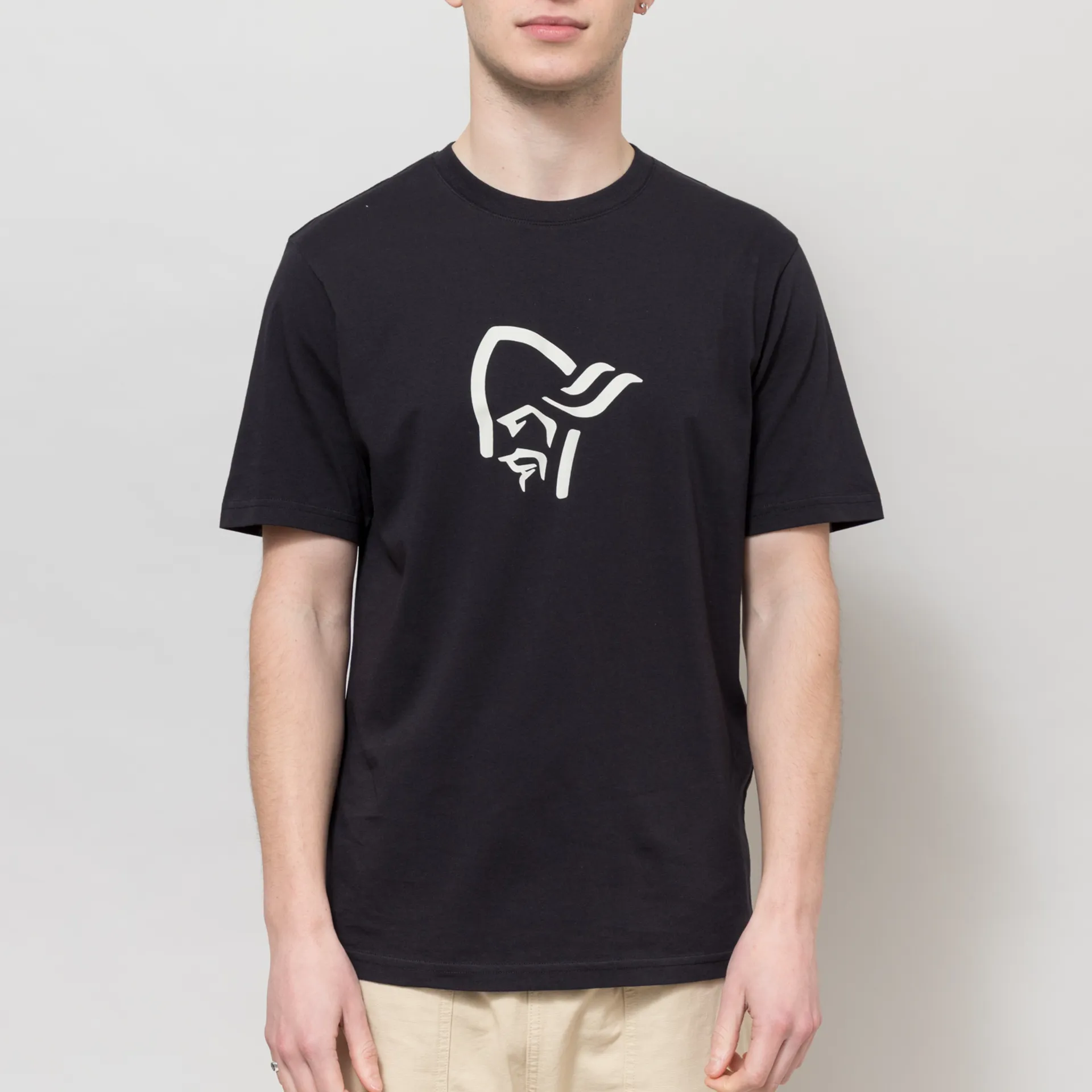 A graphic tee from Norrona, crafted from durable organic cotton and cut in a regular fit for everyday wear. It has a ribbed crewneck, a straight hem and is complete with a printed Norrona Viking logo across the centre front.