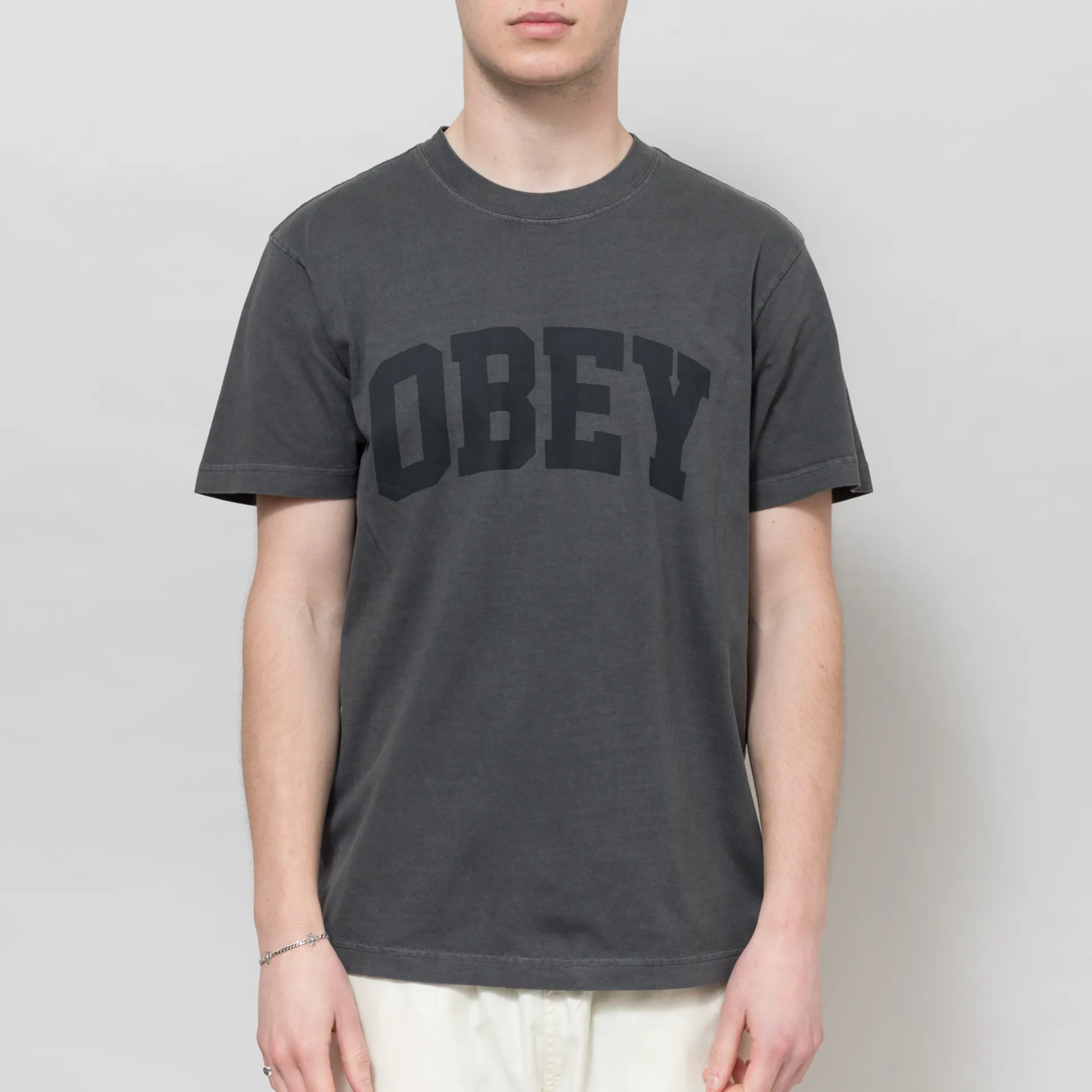 A graphic tee from Obey, cut in a regular fit for everyday comfort and crafted from soft, pigment-dyed cotton. It has a ribbed crewneck, a straight hem and a university-style Obey logo to the centre front.