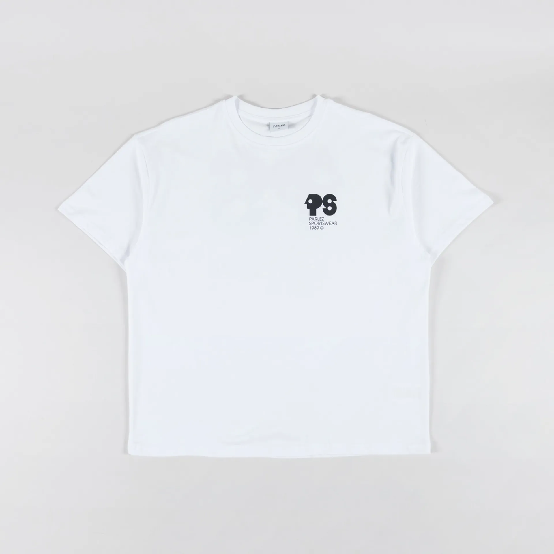An oversized tee from Parlez, constructed from GOTS-certified, 100% organic cotton. Featuring a ribbed crewneck, a straight hem and finished with some cool graphics to the chest and back.