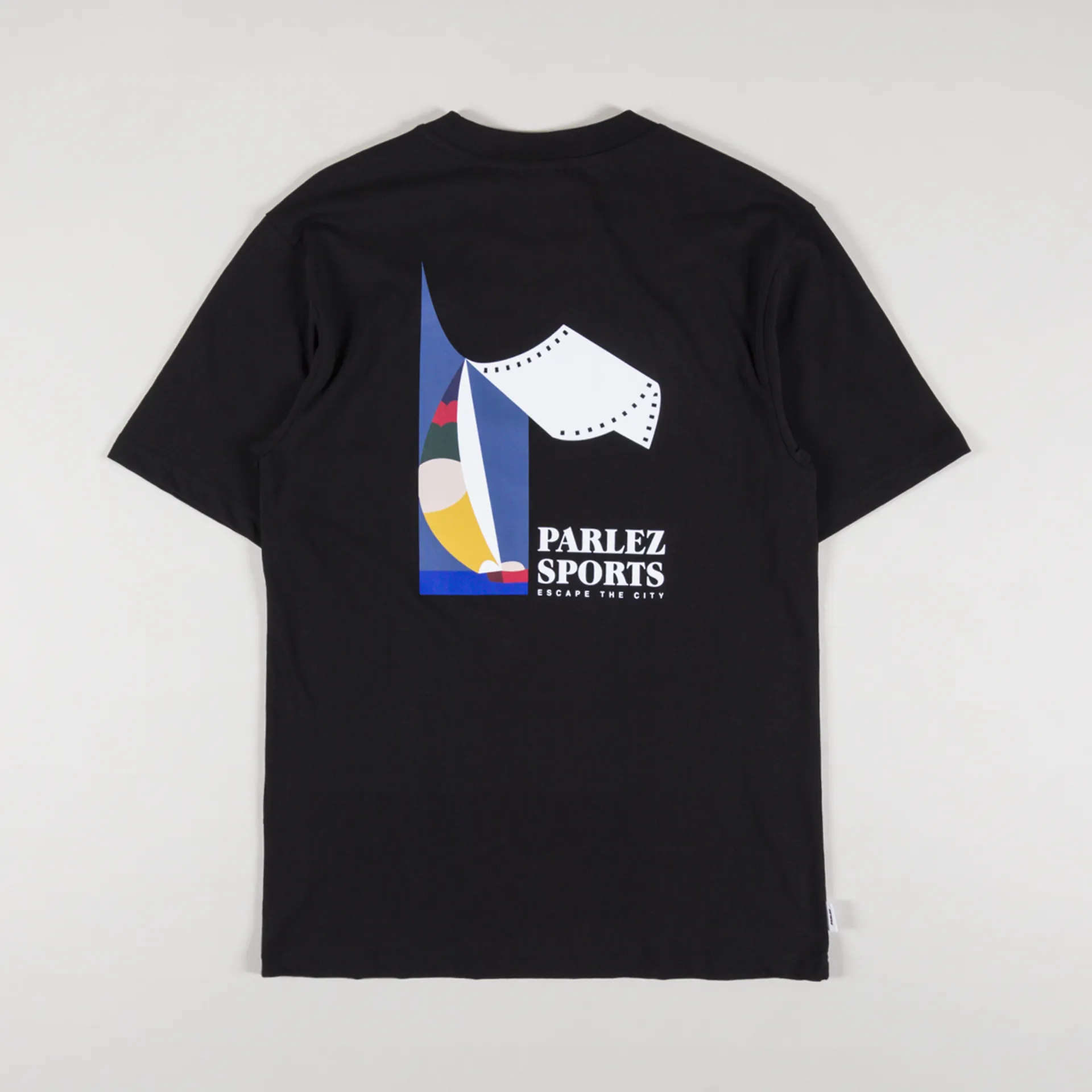 A short sleeve tee from Bristol-based Parlez, made from a comfortable 100% organic cotton with a ribbed crew neck. It has graphic branding to the chest and back, and a woven flag label to the side.